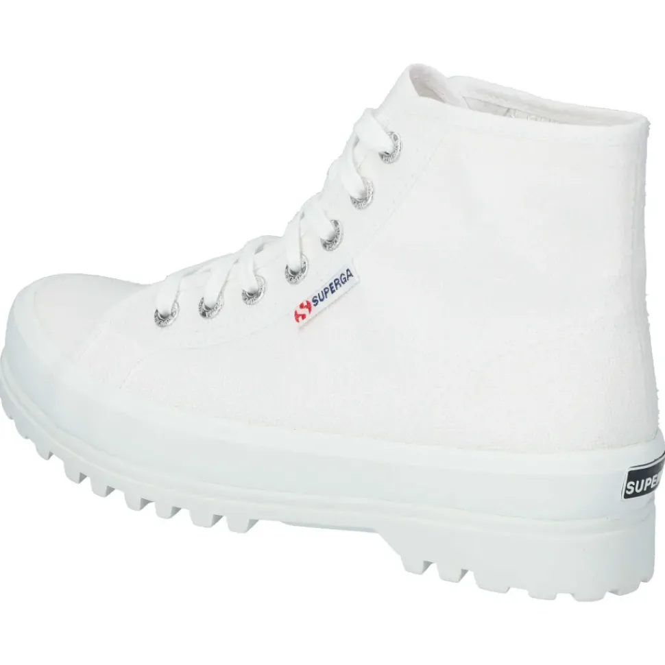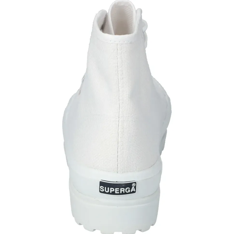 Sportlich und modern zeigen sich die High-Top-Sneaker von Superga. Sie überzeugen durch feine Logo-Details und einen hohen Tragekomfort.