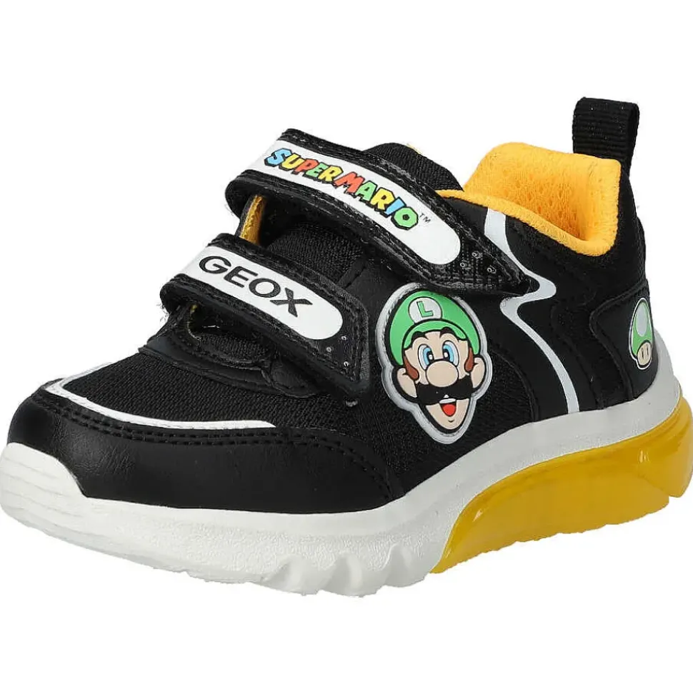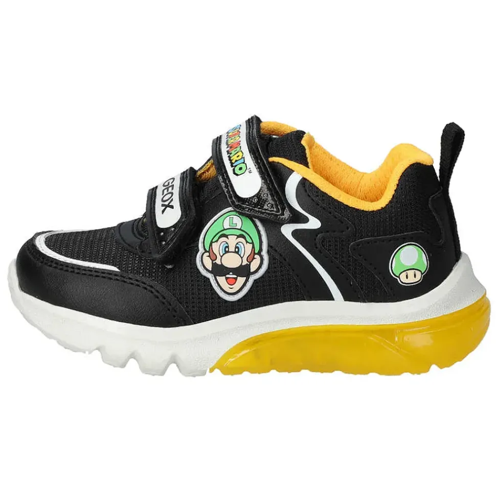 Der Nintendo Super Mario Sneaker von Geox ist sehr bequem. Durch den Klettverschluss wird das An- und Ausziehen zum Kinderspiel. Blinkfunktion mit On/Off-Schalter.
