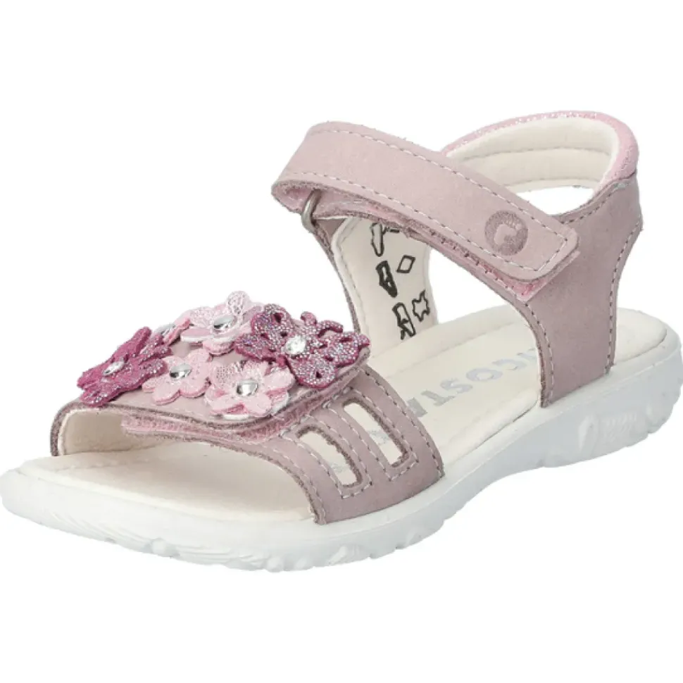 CILIA von RICOSTA – Mädchen Sandalen für Prinzessinnen. CILIA hat glitzernde Blumen auf dem Obermaterial und Microfaserfutter als Futtermaterial. Die Sandalen verfügen über Klettverschluss und einer rutschfesten und superleichten Sohle aus PU.