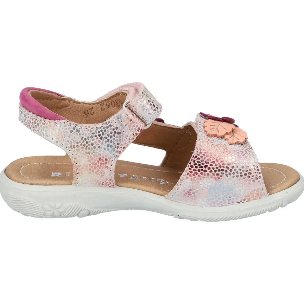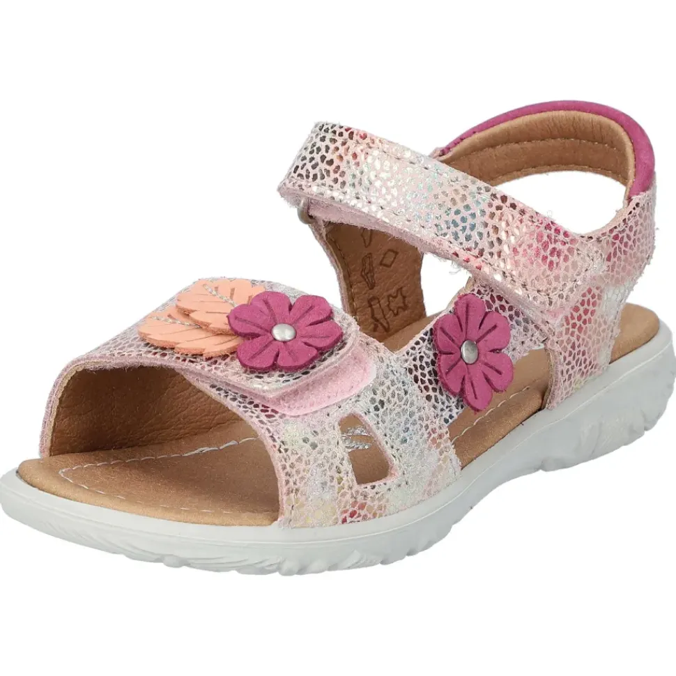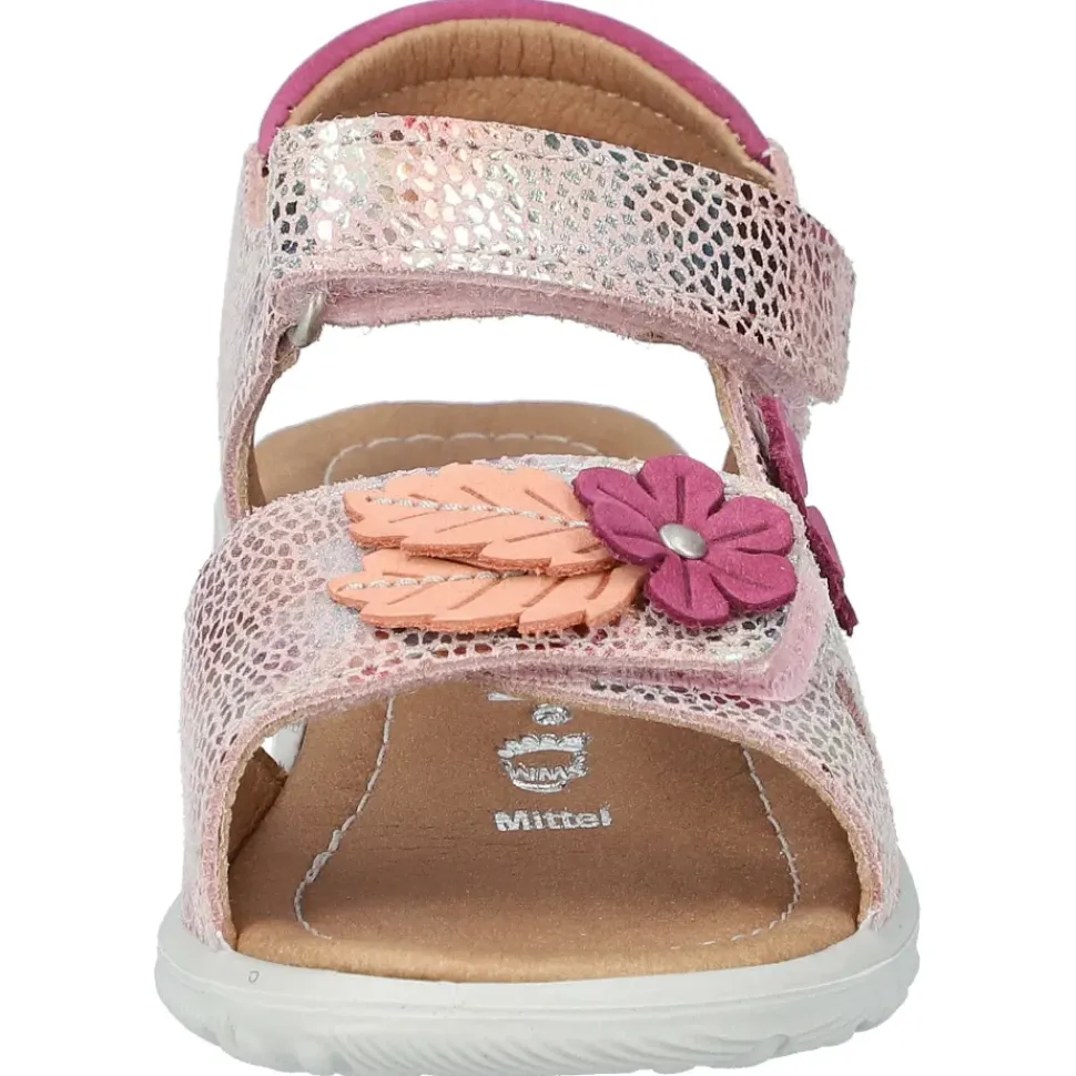 Süße Kinder-Sandalette mit hübschen Verzierungen und Metallic-Effekt.