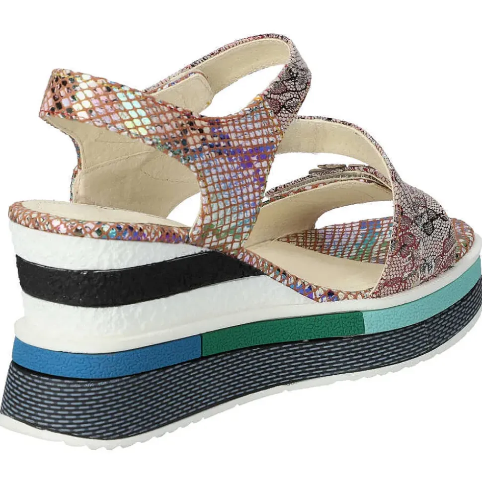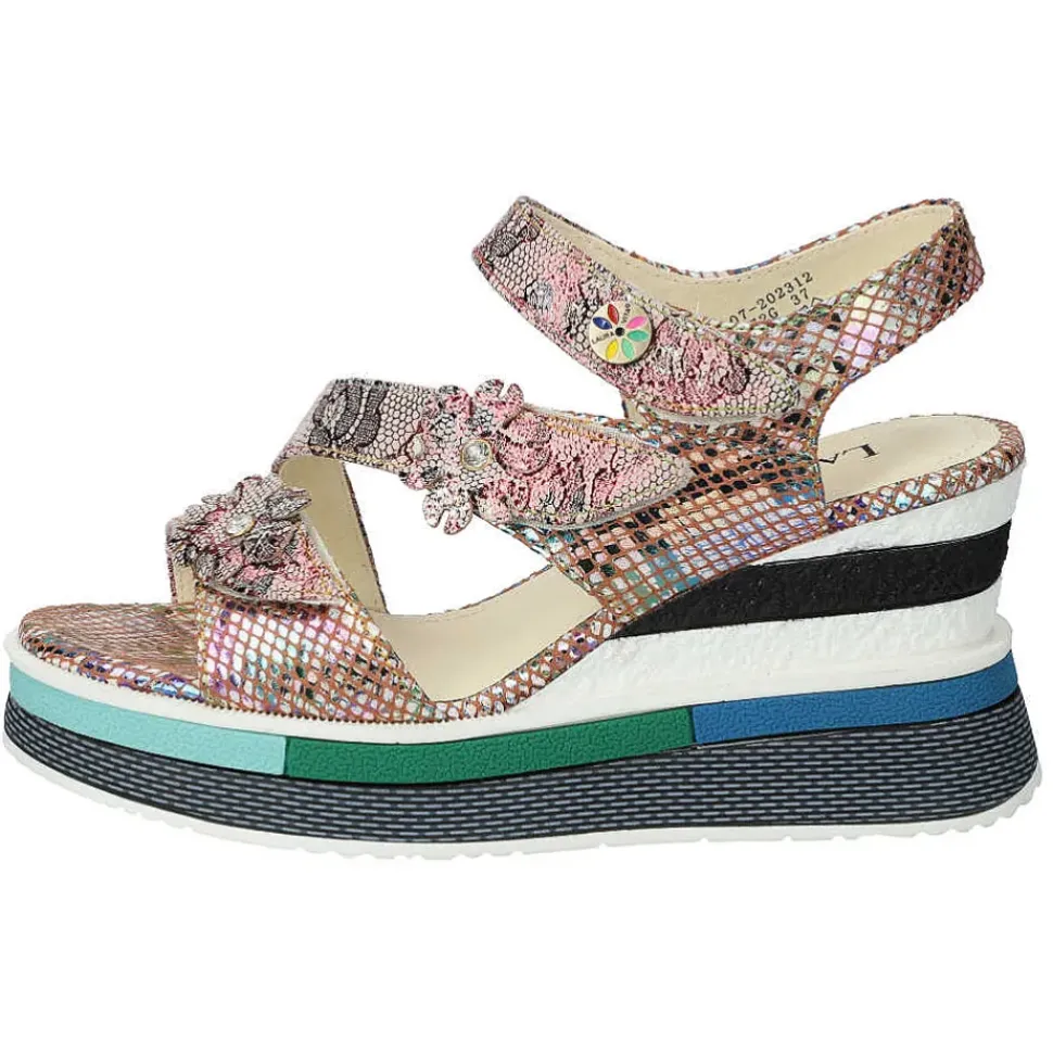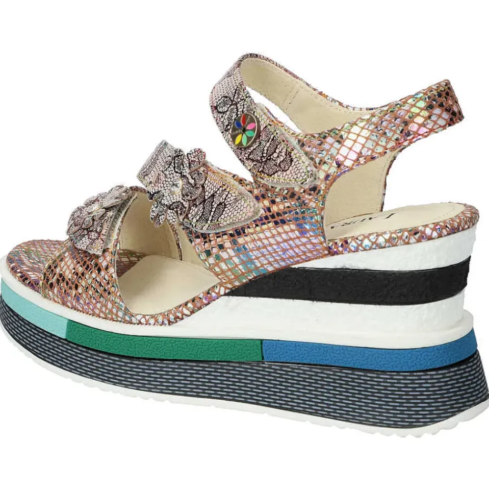 Die Sandalette von Laura Vita setzt auf Kontraste und wird durch den Material-Mix modisch in Szene gesetzt. Ein perfekter Schuh für sonnige Sommertage.