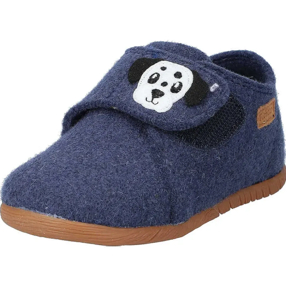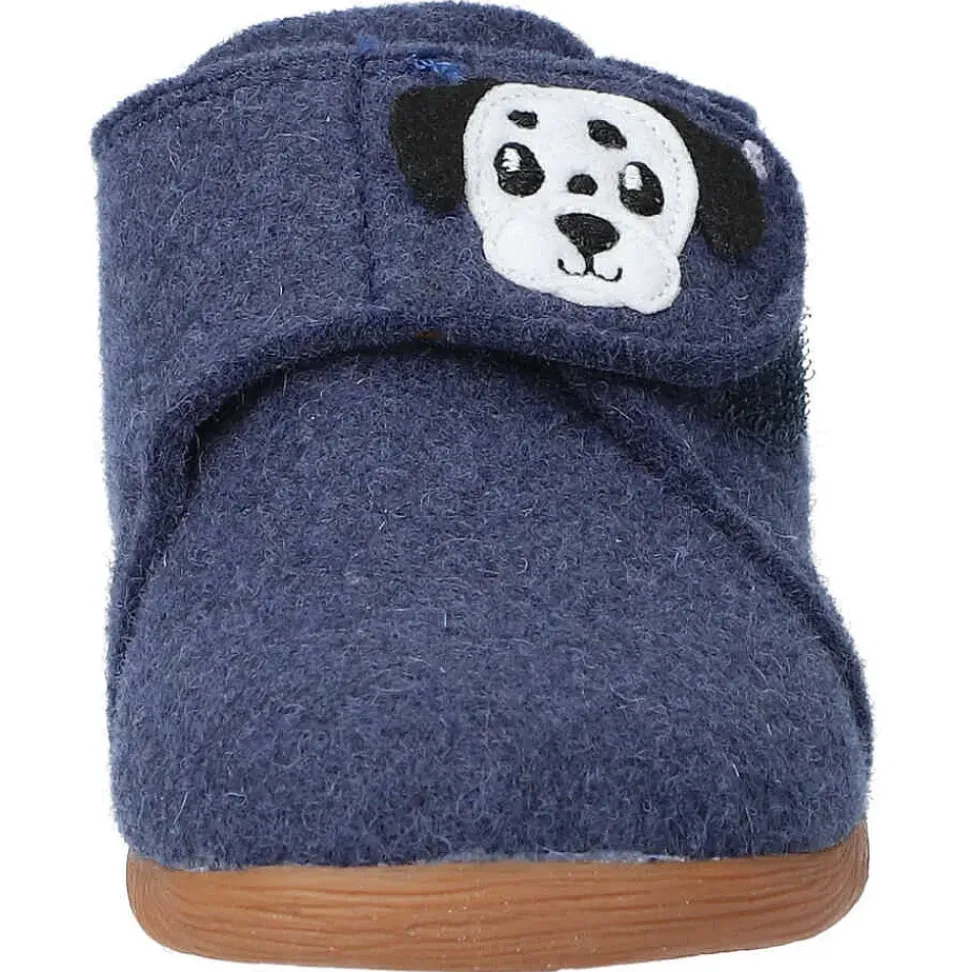 Der Hausschuh von Richter – coole Hausschuhe mit Hunde-Motiv und praktischem Klettverschluss zum einfachen An- und Ausziehen.