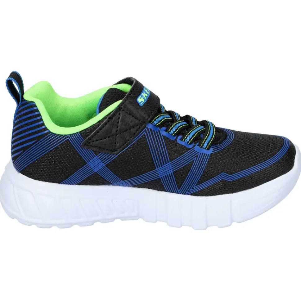 Der Sneaker von Skechers mit einem Obermaterial aus Synthetik und vielen bunten Details. Besonderes Highlight: Blinkfunktion mit On-/Off Knopf.