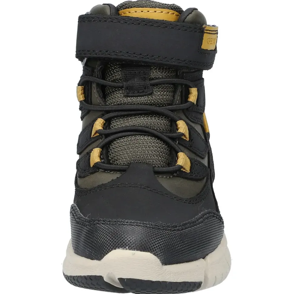 Warme, wasserdichte Jungenstiefelette, ultraflexibel und stoßgedämpft. Eine Stiefelette aus Nubukleder und Material in gewachster Lederoptik mit einer innovativen Sohle, die dem Fuß maximale Flexibilität, Stoßdämpfung und Stabilität bietet.