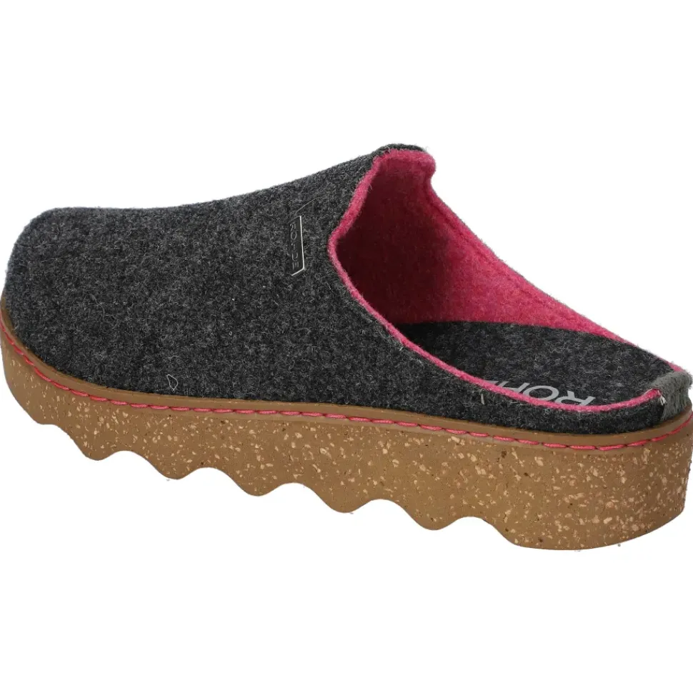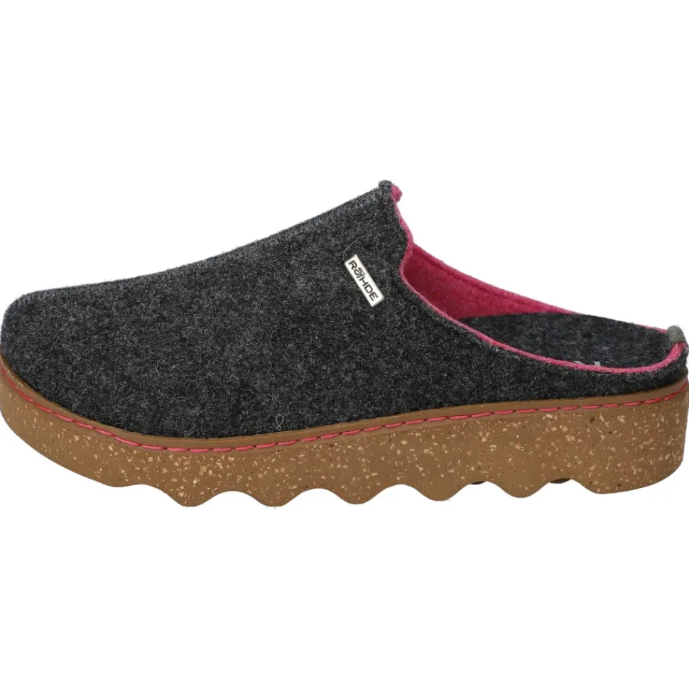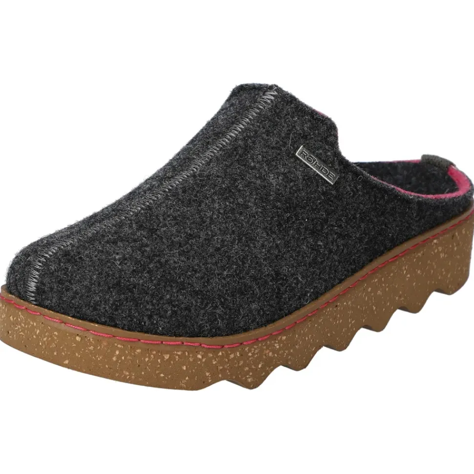 Damen-Winterpantoffeln aus dem Hause Rohde. Trendige Farbkombination aus Grau/Pink und bequemes Filz-Obermaterial, welches Ihre Füße schön warm hält.