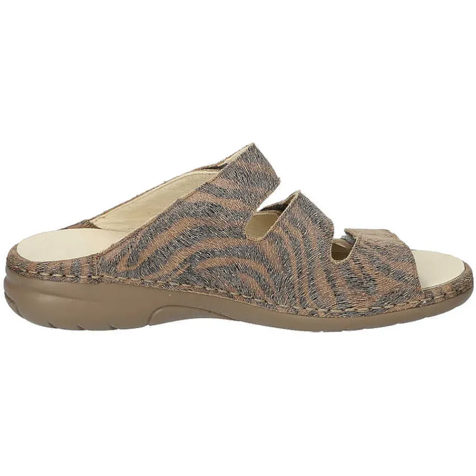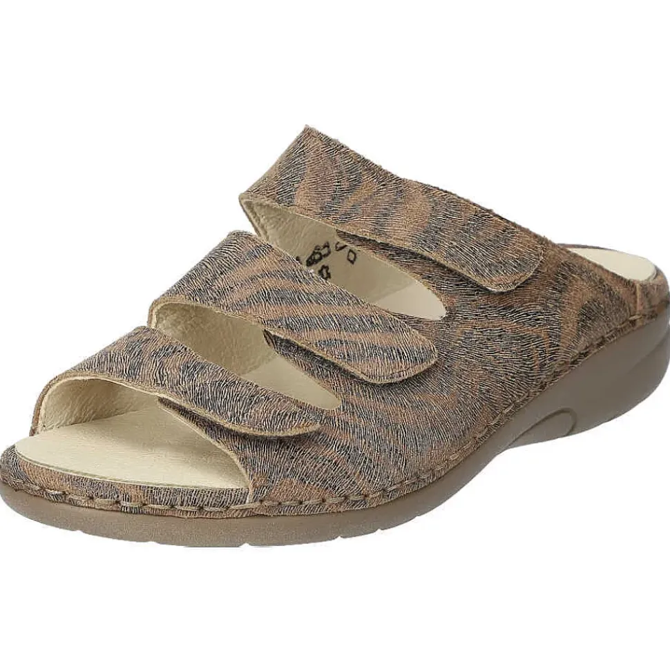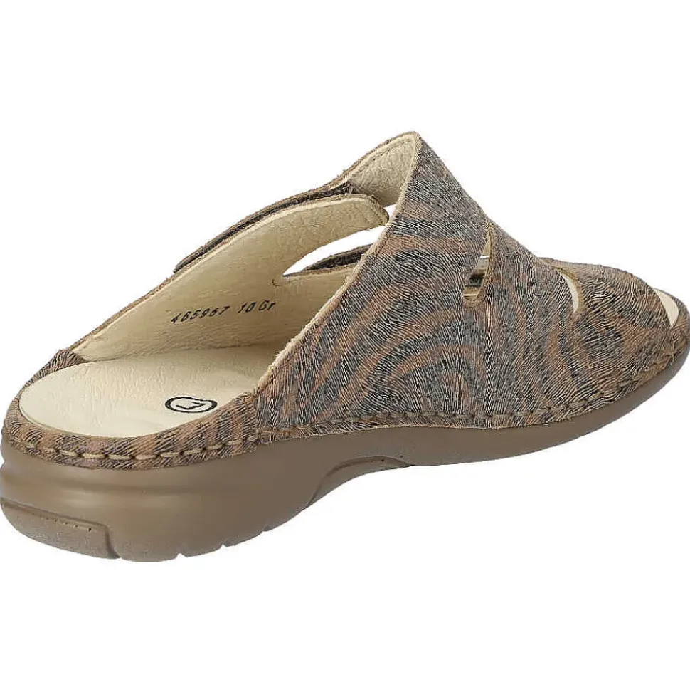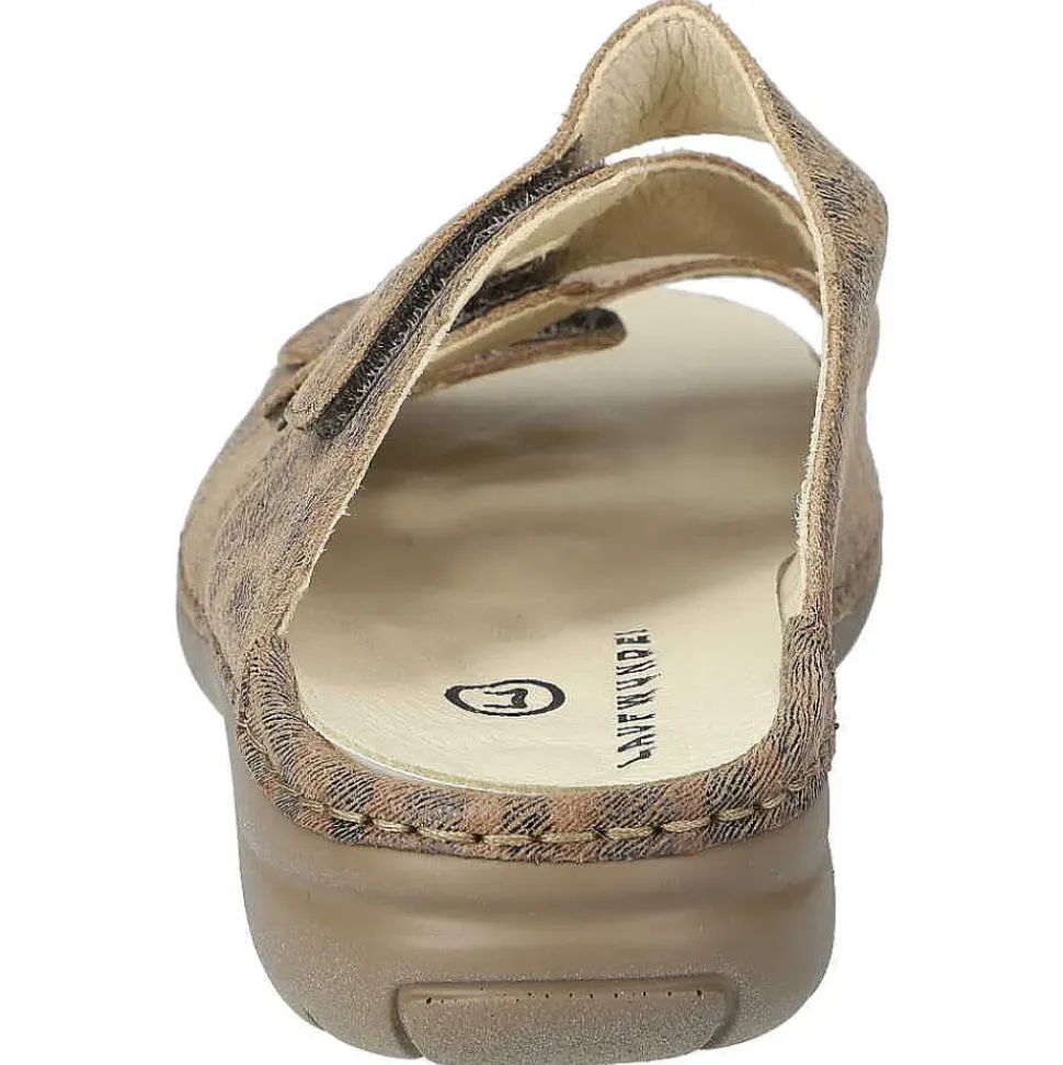 Bequeme Damenpantolette von Laufwunder. Die gepolsterte Sohle sorgt für einen hohen Tragekomfort.