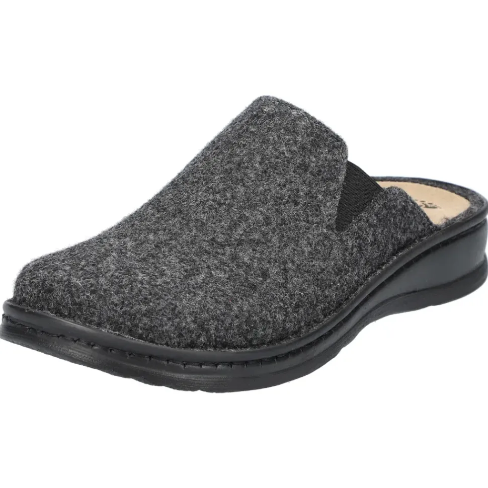 equeme Pantoffeln von MUBB. Weiches Woll-Filz in grau, perfekt für kalte Tage. Ultraleichte Laufsohle mit Rutsch- und Schockabsorber.