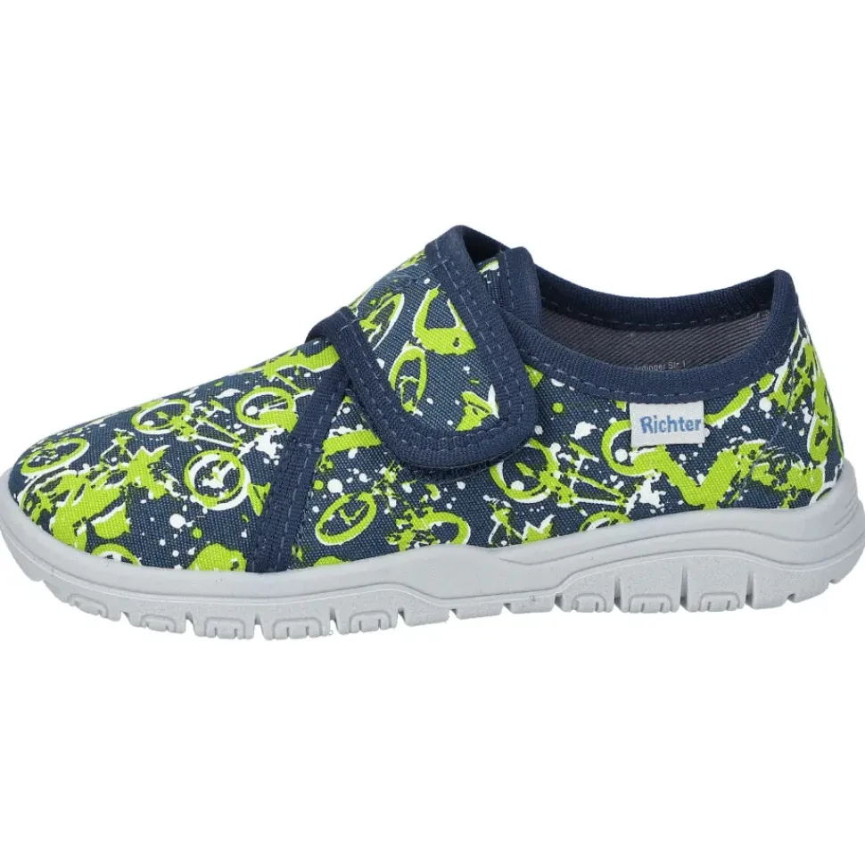Der Kinder-Hausschuh von Richter sorgt für ein angenehmes Tragegefühl und die Sohle ist rutschhemmend. Der Klettverschluss erleichtert das An- und Ausziehen.