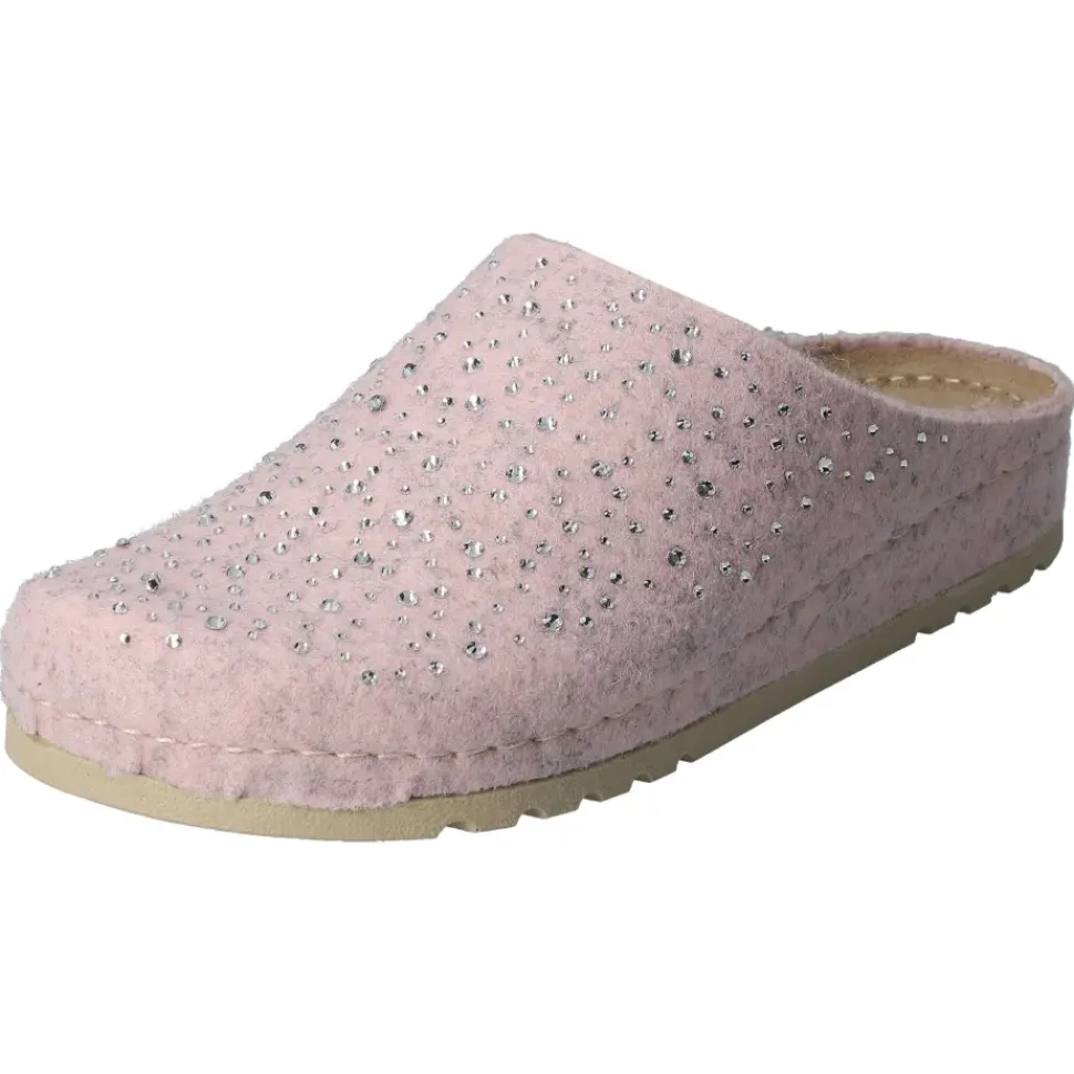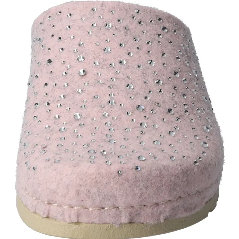 Bequeme Pantoffeln von MUBB. Weiches Woll- Filz in rose mit tollen Steinchen-Verzierung geschmückt. Perfekt für kalte Tage. Ultraleichte Laufsohle mit Rutsch- und Schockabsorber.