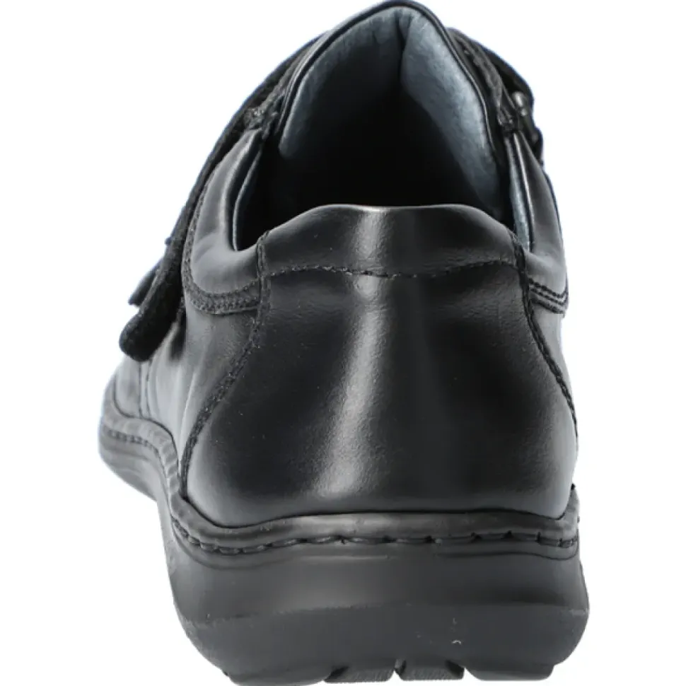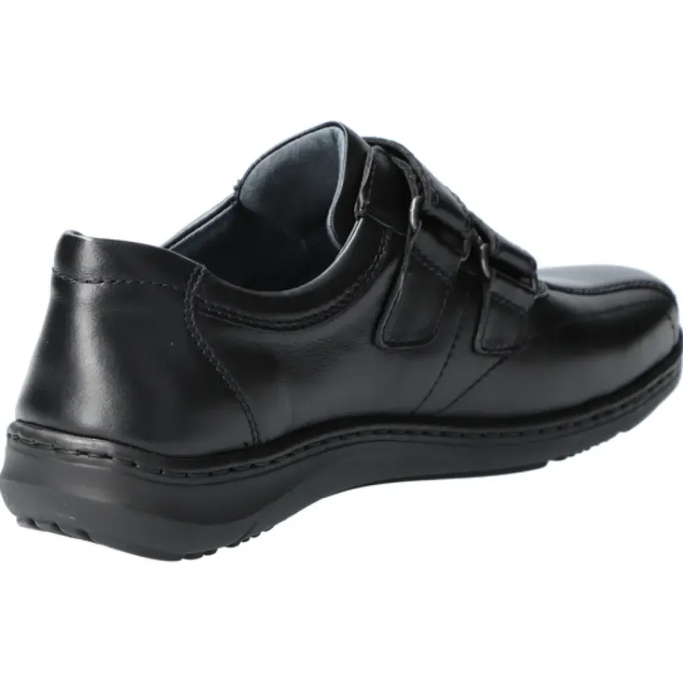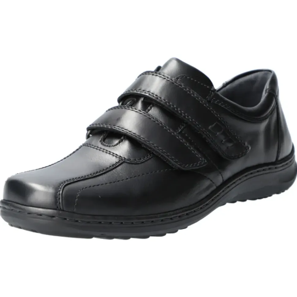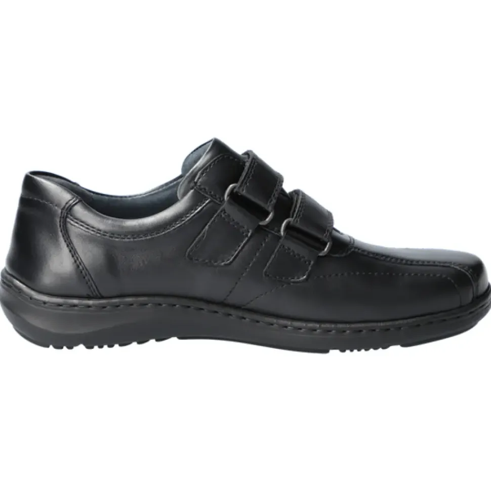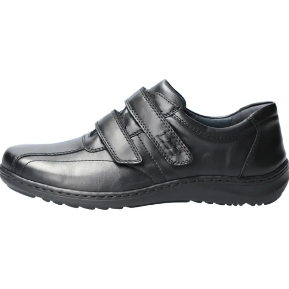 Das Oberleder und das Innenleder sind angenehm weich. Die Weite H passt sich auch dem etwas stärkeren Fuß optimal an und das luftgepolsterte Wechselfußbett schont Gelenke und Bandscheiben. Klettverschlüsse fürs einfache An- und Ausziehen ohne Bücken.
