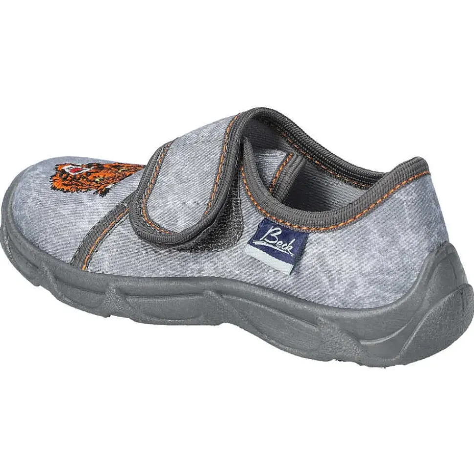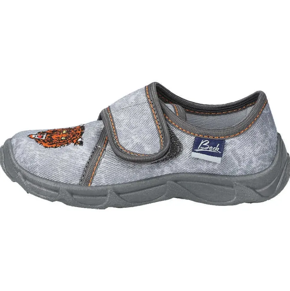 Der Hausschuh von Beck – coole Hausschuhe mit tollem Motiv und praktischem Klettverschluss zum einfachen An- und Ausziehen.