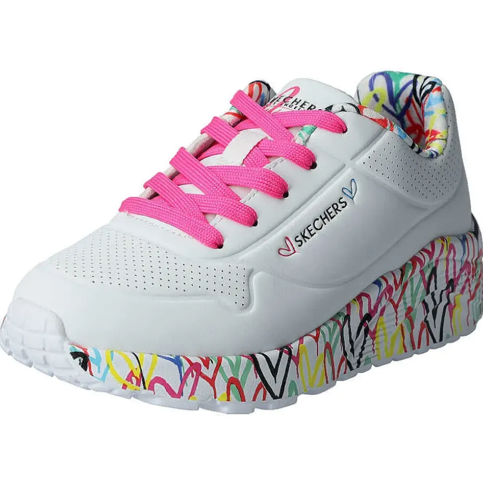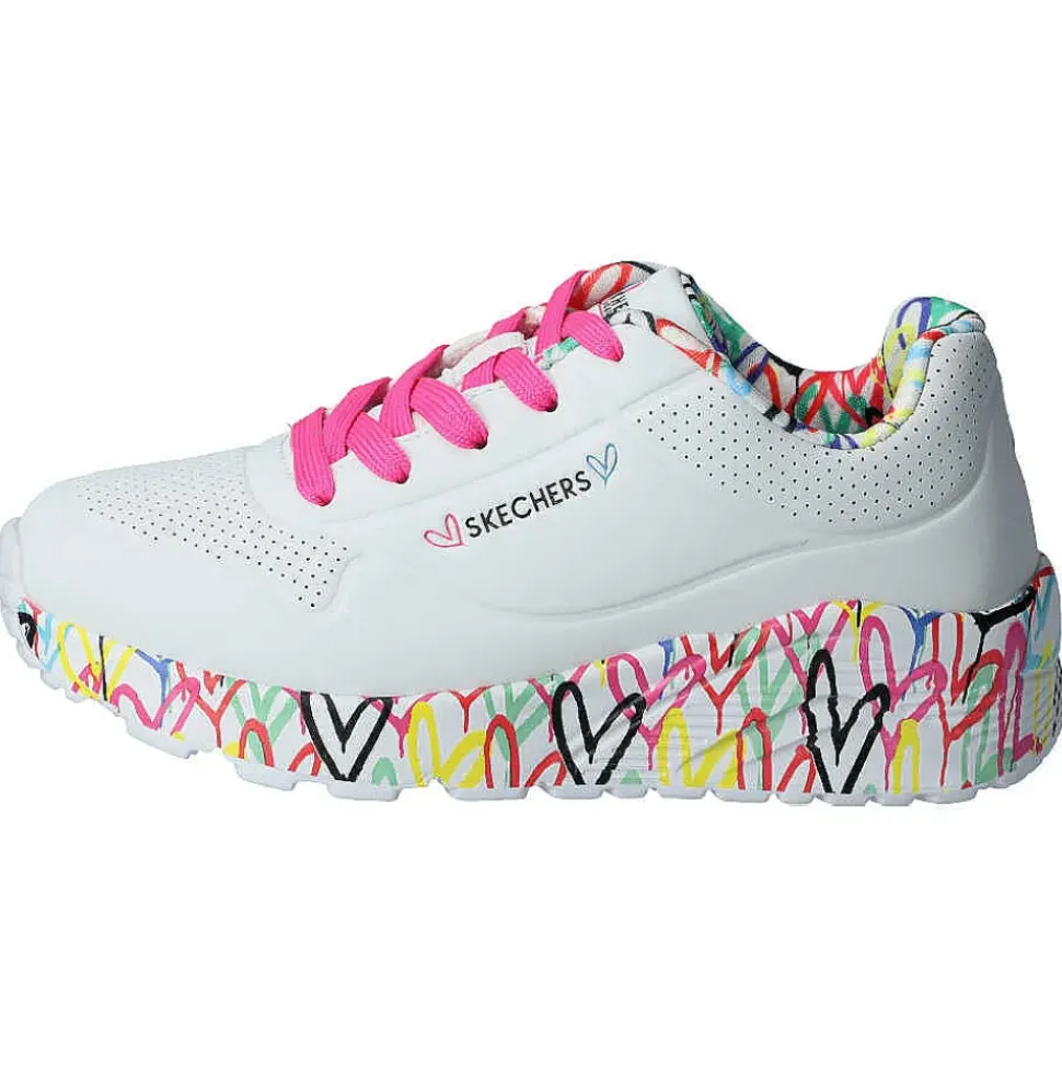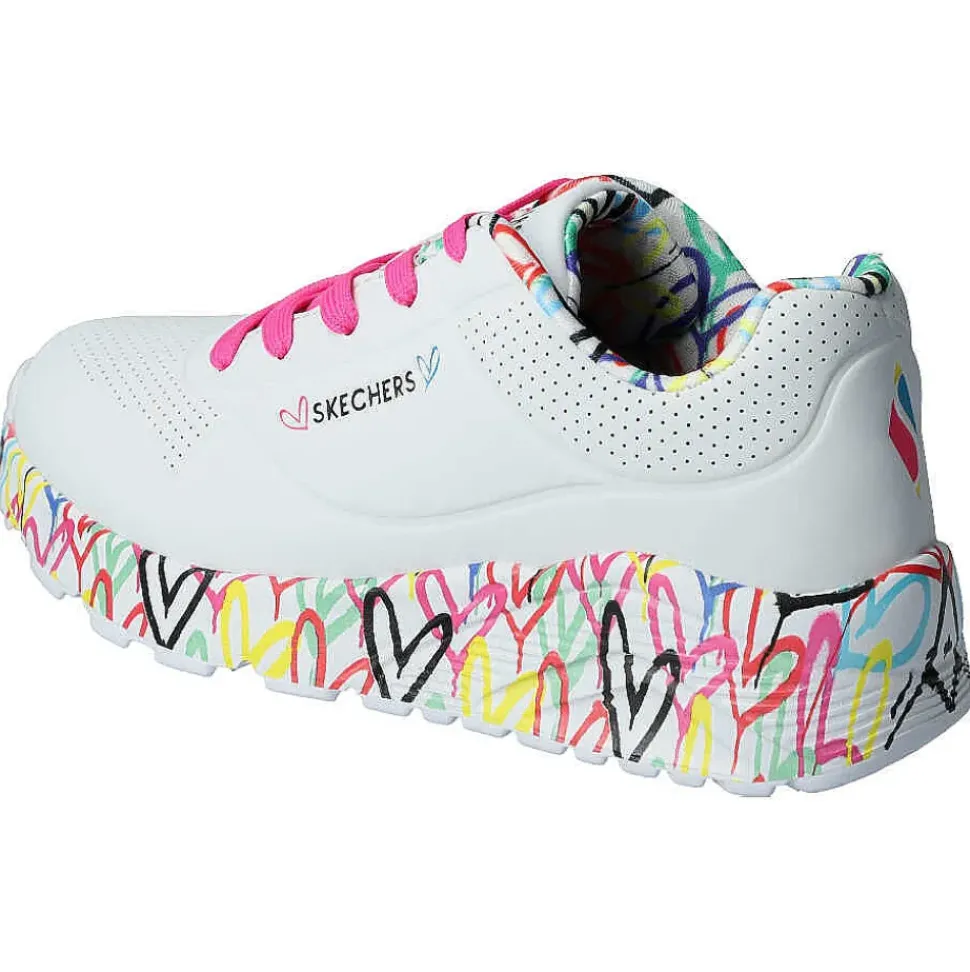 Der Skechers design von“ James Goldcrown“ mit einem Obermaterial aus Synthetik und vielen bunten Herzen.