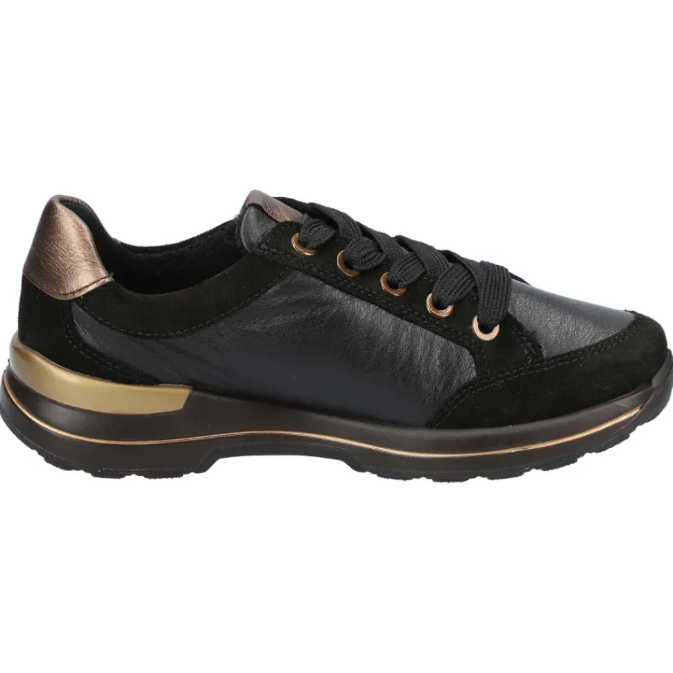 Sportliche Sneaker aus weichem Leder, trotz der Keilsohle extrem leicht. Rutschhemmende Sohle und stoßsichere Spitze. Sanfter Auftritt dank innovative HighSoft Technologie. Weich gepolstertes Wechselfußbett mit Frottee auf Bambusbasis bezogen.Weite: