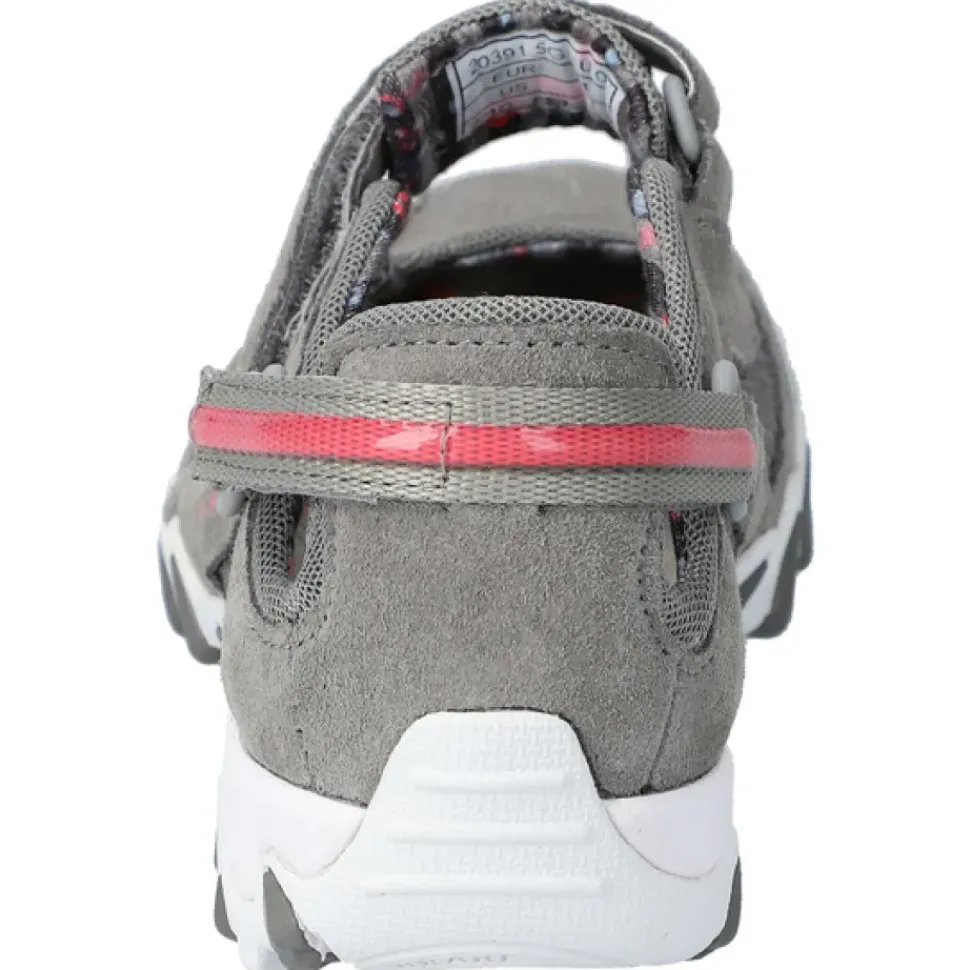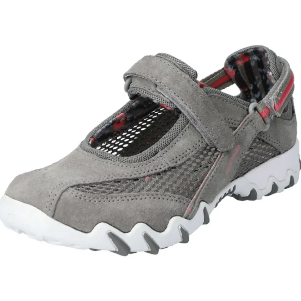 Das geländetaugliche Profil bietet genügend Halt – und das auch in anspruchsvollem Gelände. Weiche Fersenpolsterung verhindern Druck- oder Scheuerstellen. Individuell einstellbare Fersen- und Ristriemen geben perfekten Halt. Auswechselbares Fußbett.