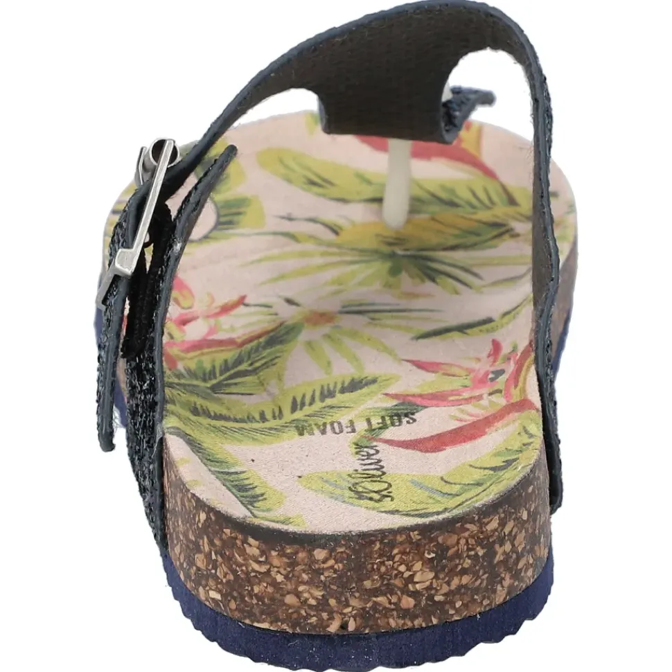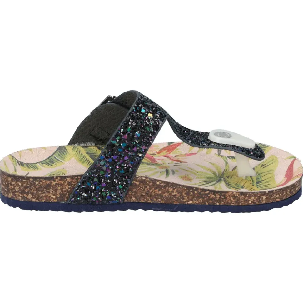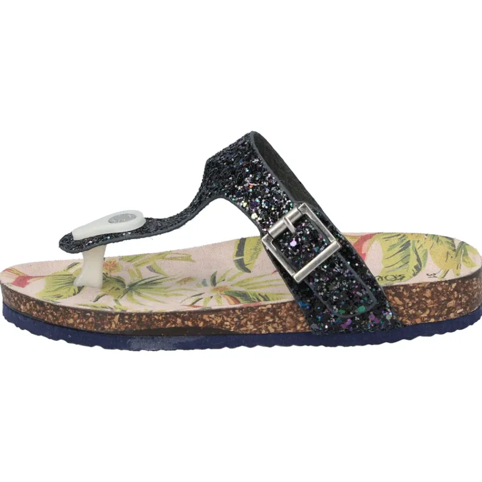 Süße Zehentrenner von S. Oliver in farbenfrohen Farben und mit Glitzersteinchen. Durch den Schnallenverschluss wird das An -und Ausziehen ein Kinderspiel.