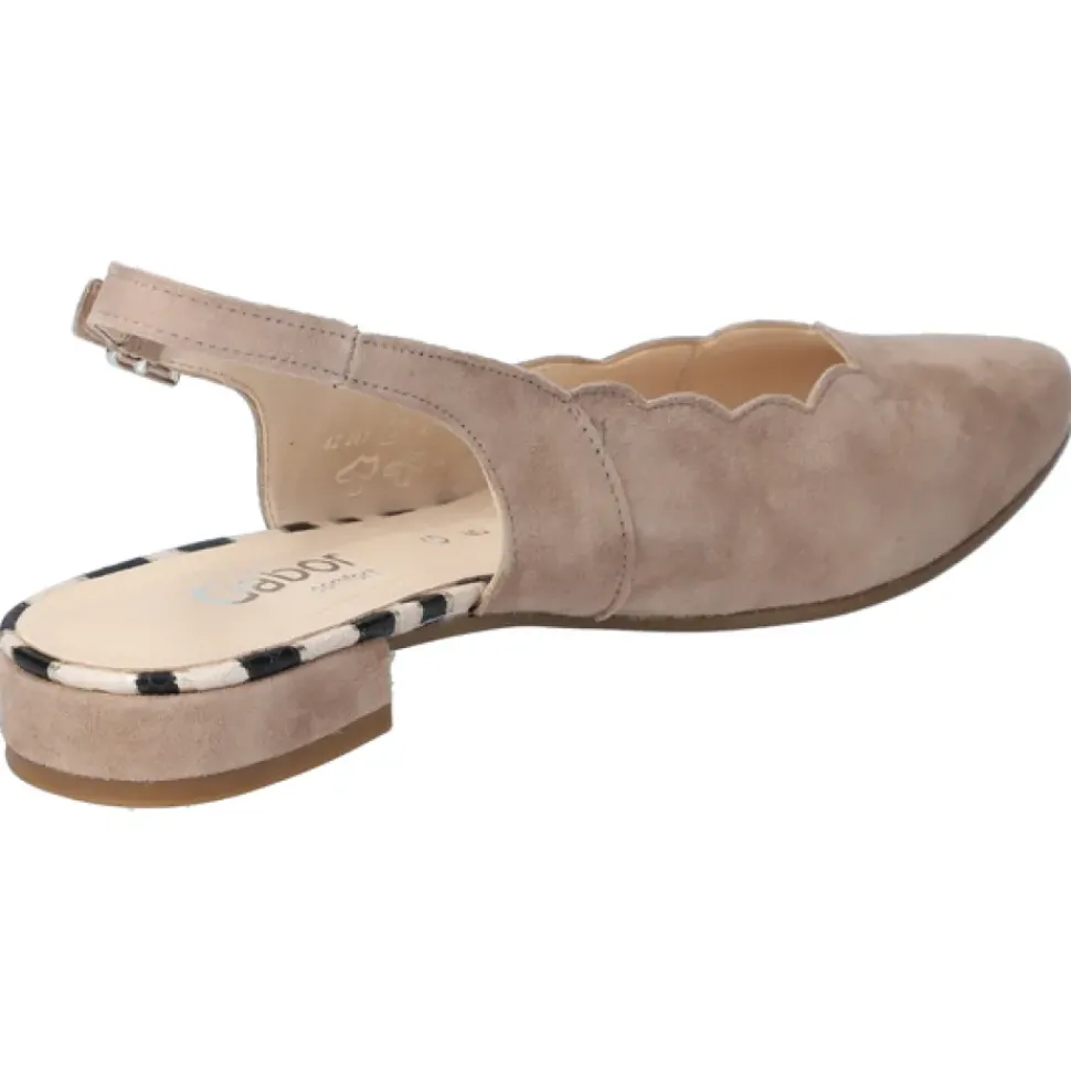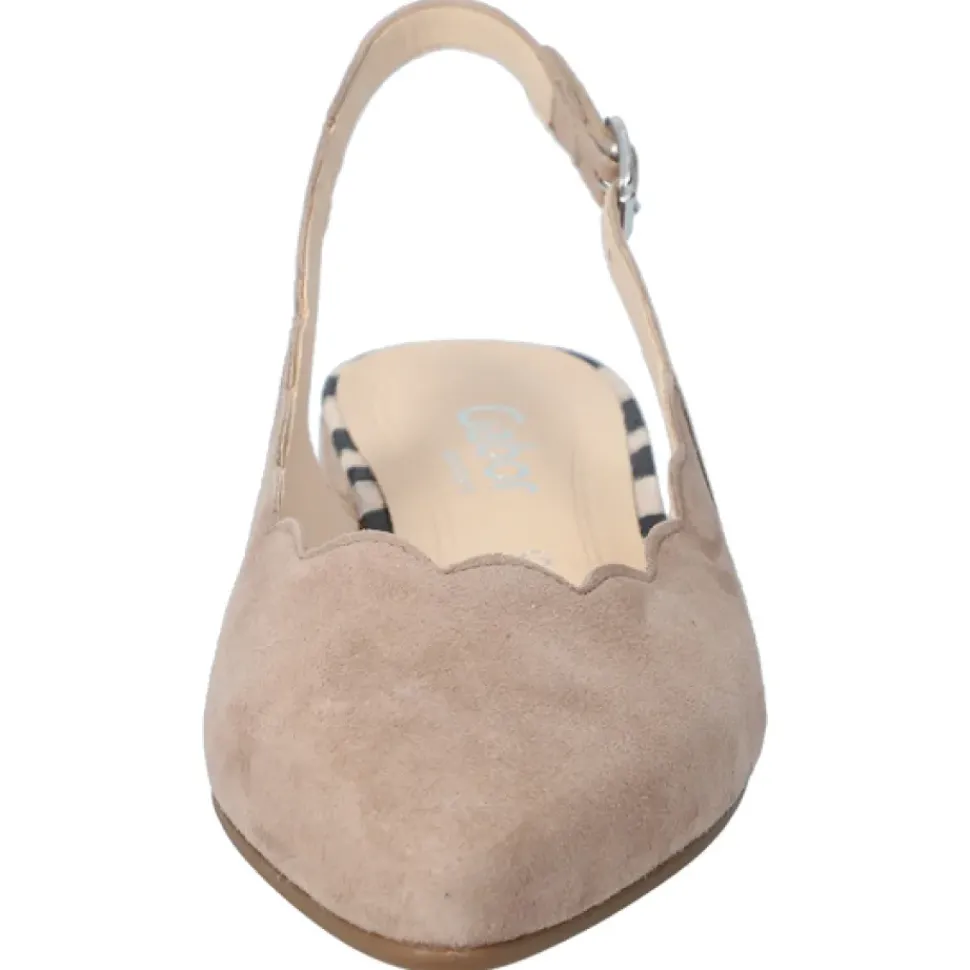 Der dezente Slingpump in Rauleder von Gabor wirkt durch die Schuhspitze elegant und feminin. Wunderbar in Szene gesetzte Beine zaubert der kleine Blockabsatz. Die breitere Auftrittsfläche bietet mehr Volumen im Ballen- und Ristbereich.