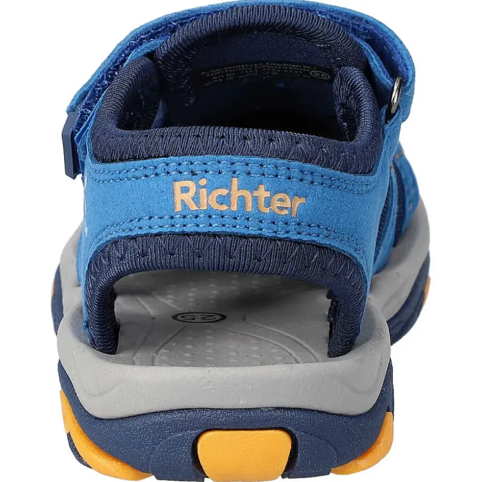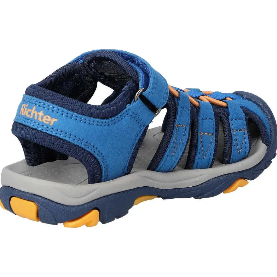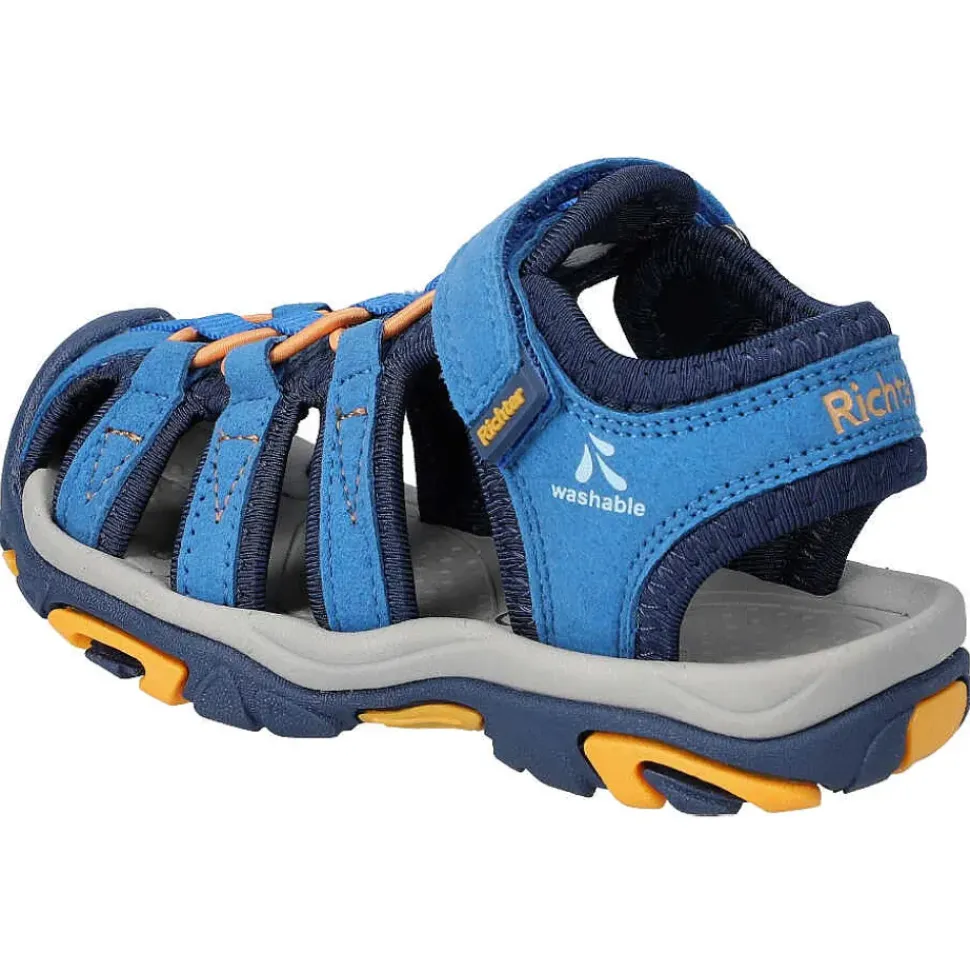 Hübsche Kinder Trekkingsandalen von Richter. Die Sandale ist sehr robust und das bequeme Fußbett sorgt rund um die Uhr für den besten Komfort.