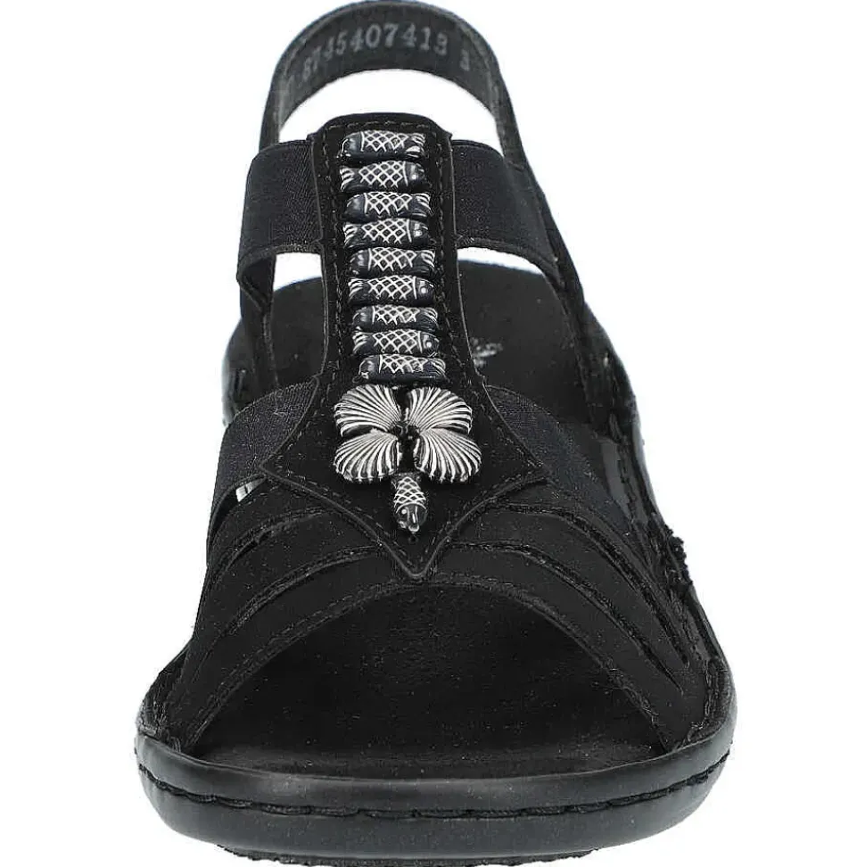 Bequeme Sandaletten von Rieker.Durch das Stretch-Band ist das An- und Ausziehen ein Kinderspiel.