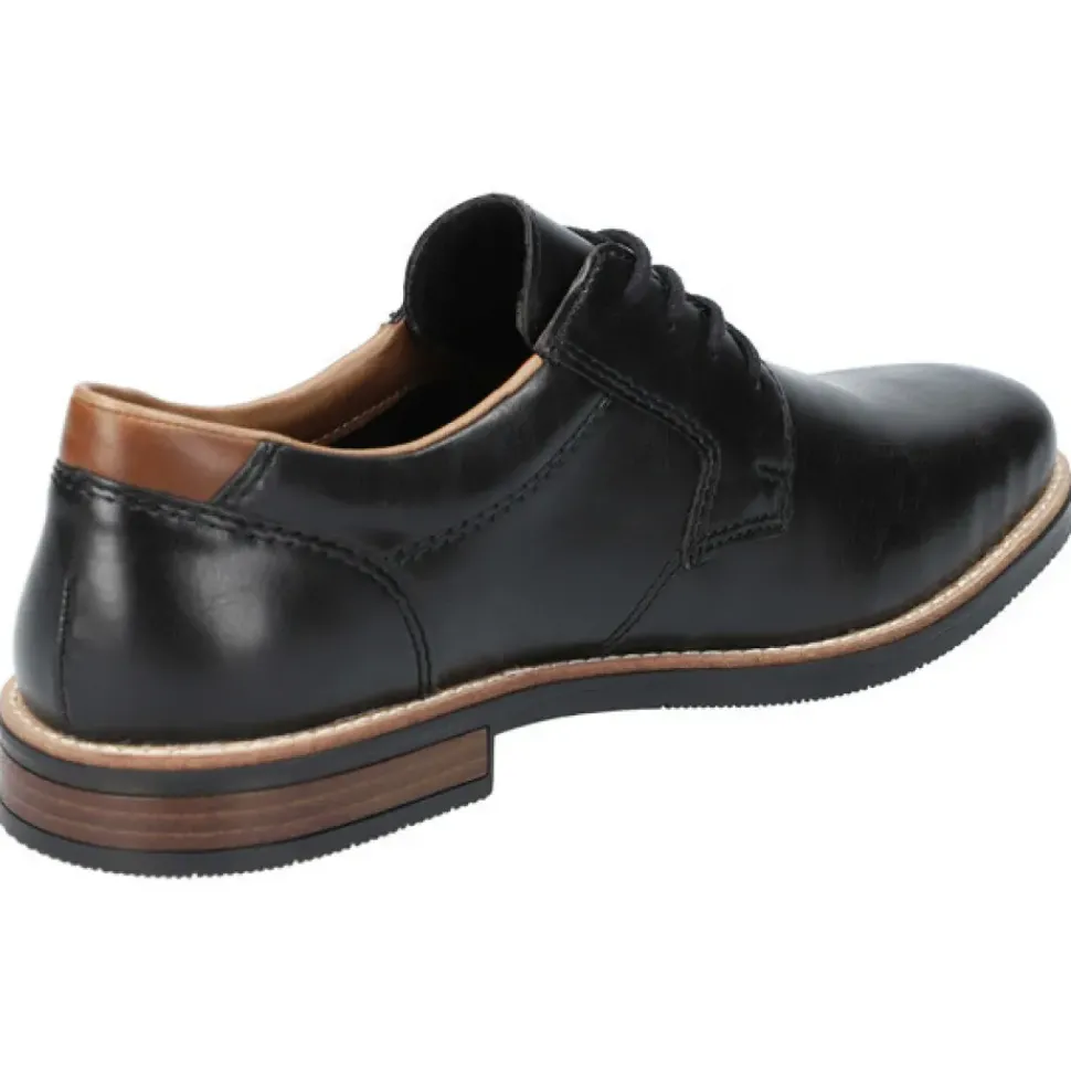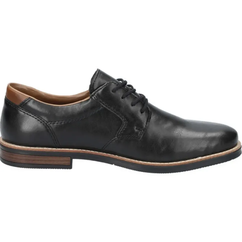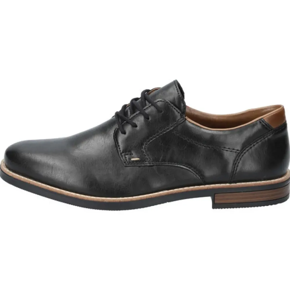 Dieser schwarze Rieker Schnürschuh mit braunem Fersen-Detail ist mit seiner smarten Optik das perfekte Finish für Ihren gehobenen Freizeit-Look mit braunen oder schwarzen Stoffhosen.