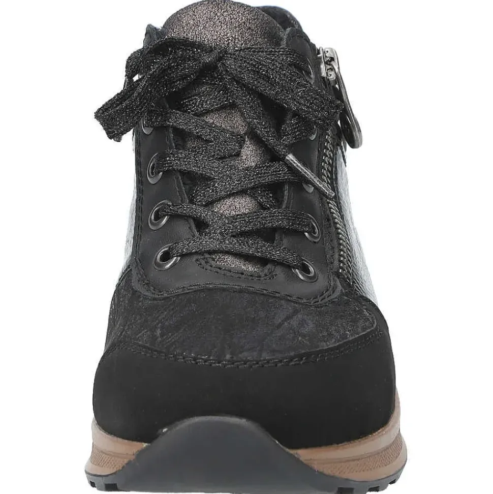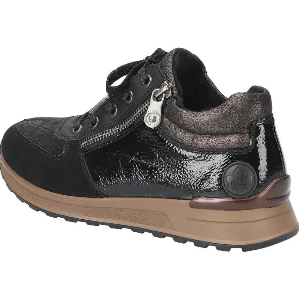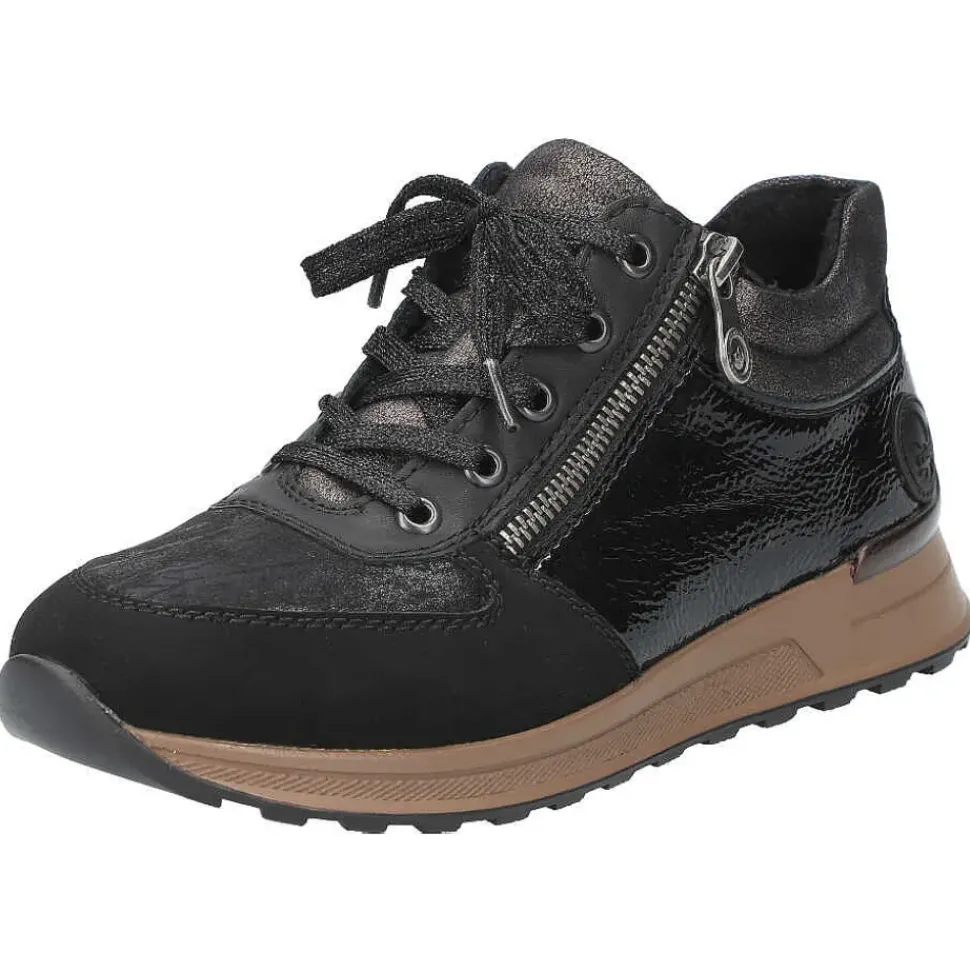 Sportlich und modern zeigt sich der Sneaker von Rieker. Er überzeugt durch feine Logo-Details und einen hohen Tragekomfort.