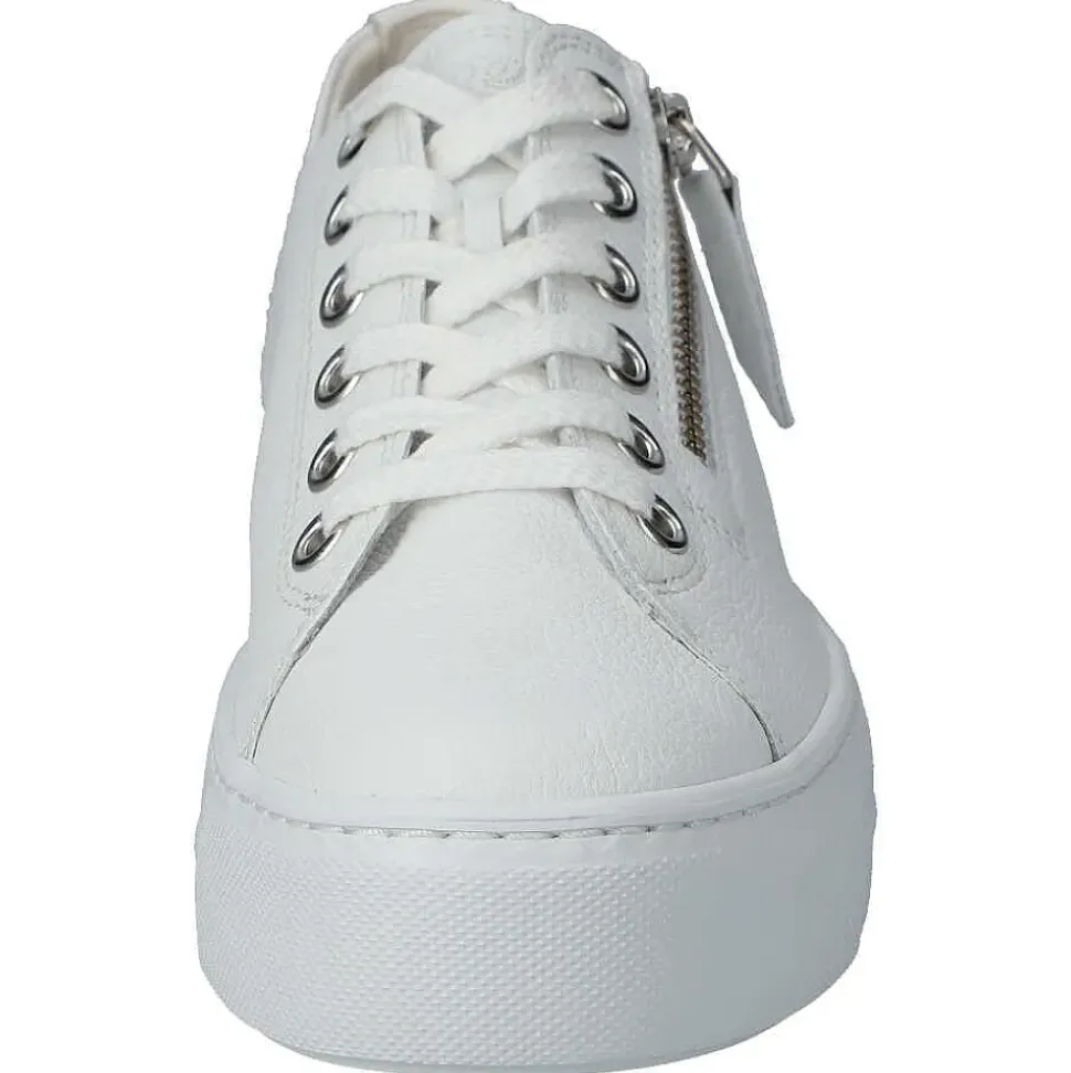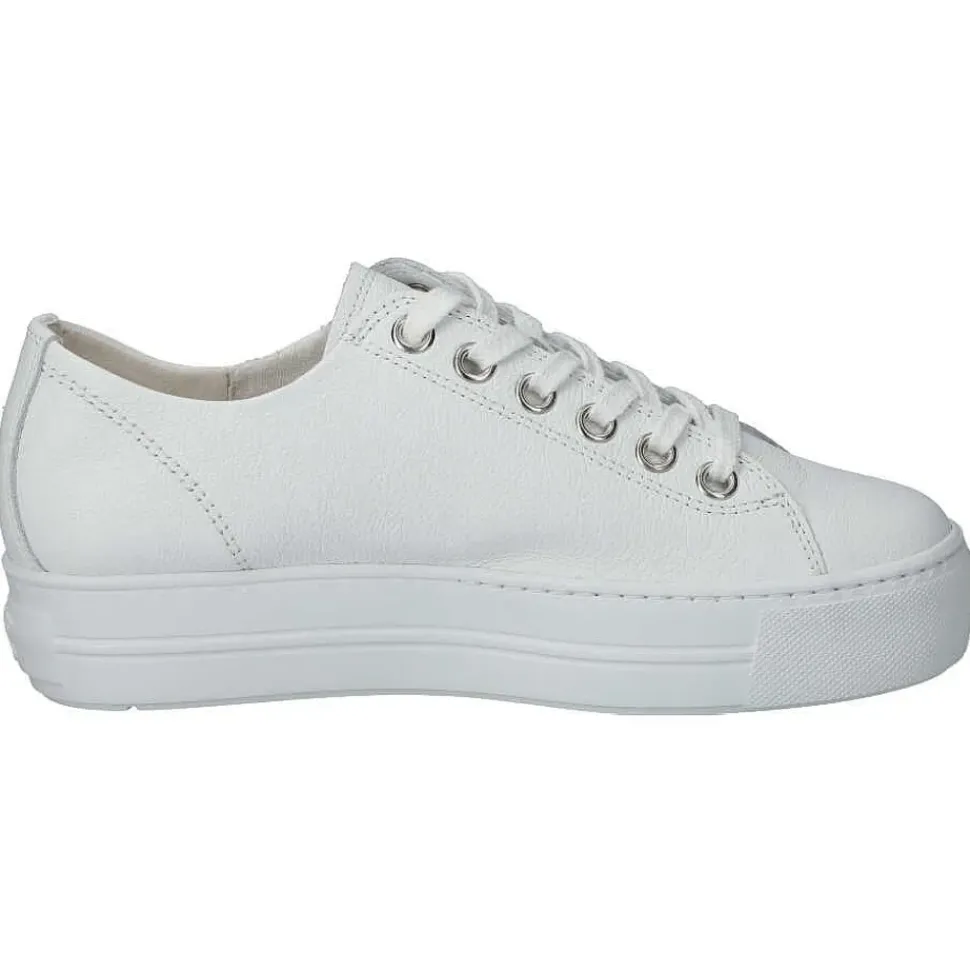 Der Kult-Sneaker geht in die nächste Runde! Paul Green verarbeitet bei diesem Plateau-Sneaker hochwertiges, weißes Kalbsleder.