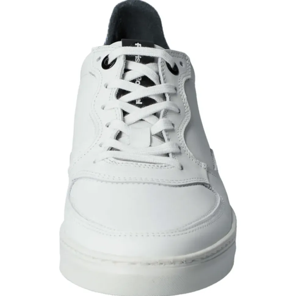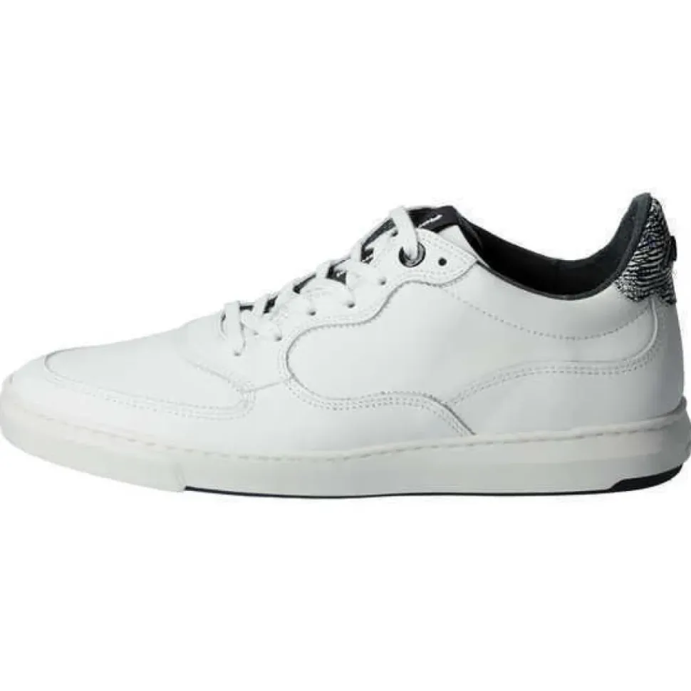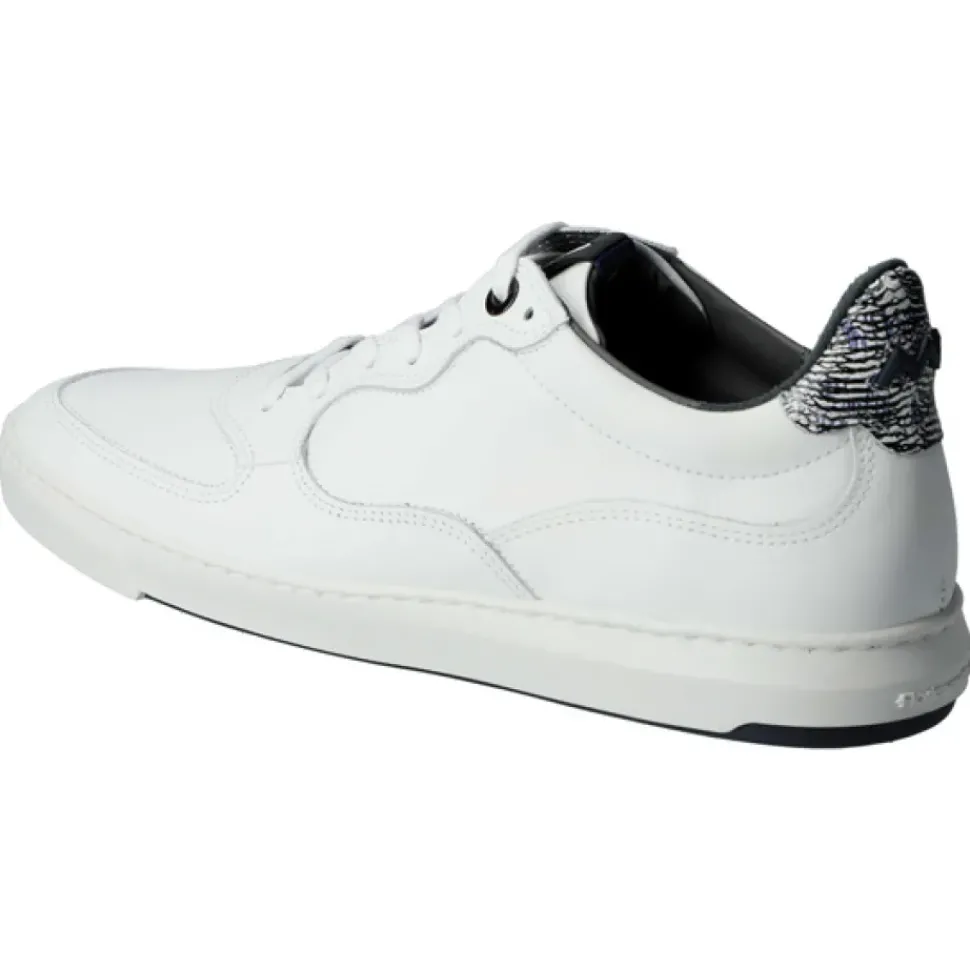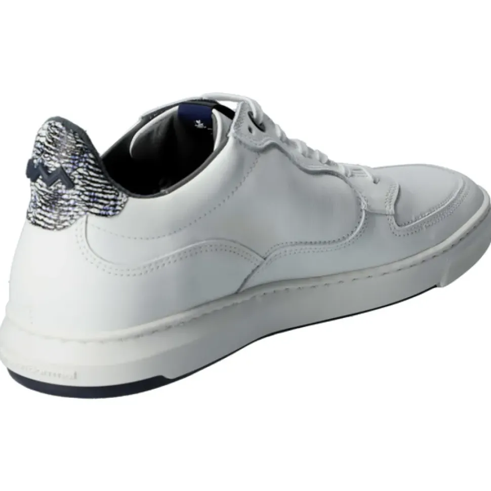Das minimalistische wirkende Modell ist mit charakteristischen Floris van Bommel Elementen versehen. Die Leder-Fersenkappe ist mit einem auffälligen Print versehen und die Gummisohle mit kontrastierender Lauffläche rundet den Look des Modell ab.