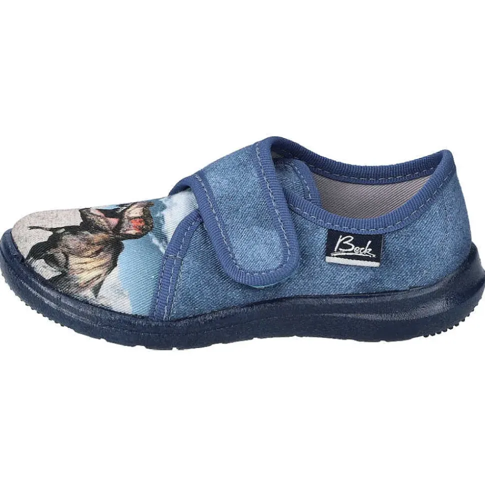 Der Hausschuh von Beck – coole Hausschuhe mit tollem Motiv und praktischem Klettverschluss zum einfachen An- und Ausziehen.