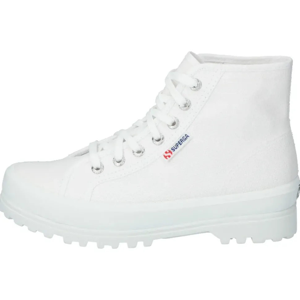 Sportlich und modern zeigen sich die High-Top-Sneaker von Superga. Sie überzeugen durch feine Logo-Details und einen hohen Tragekomfort.