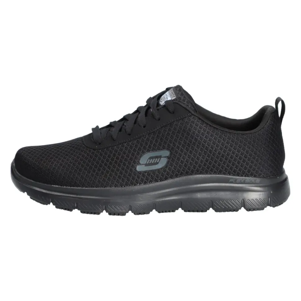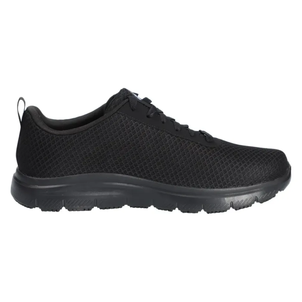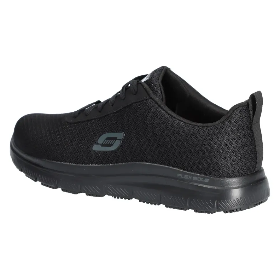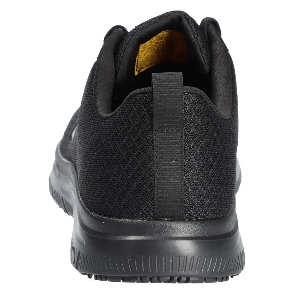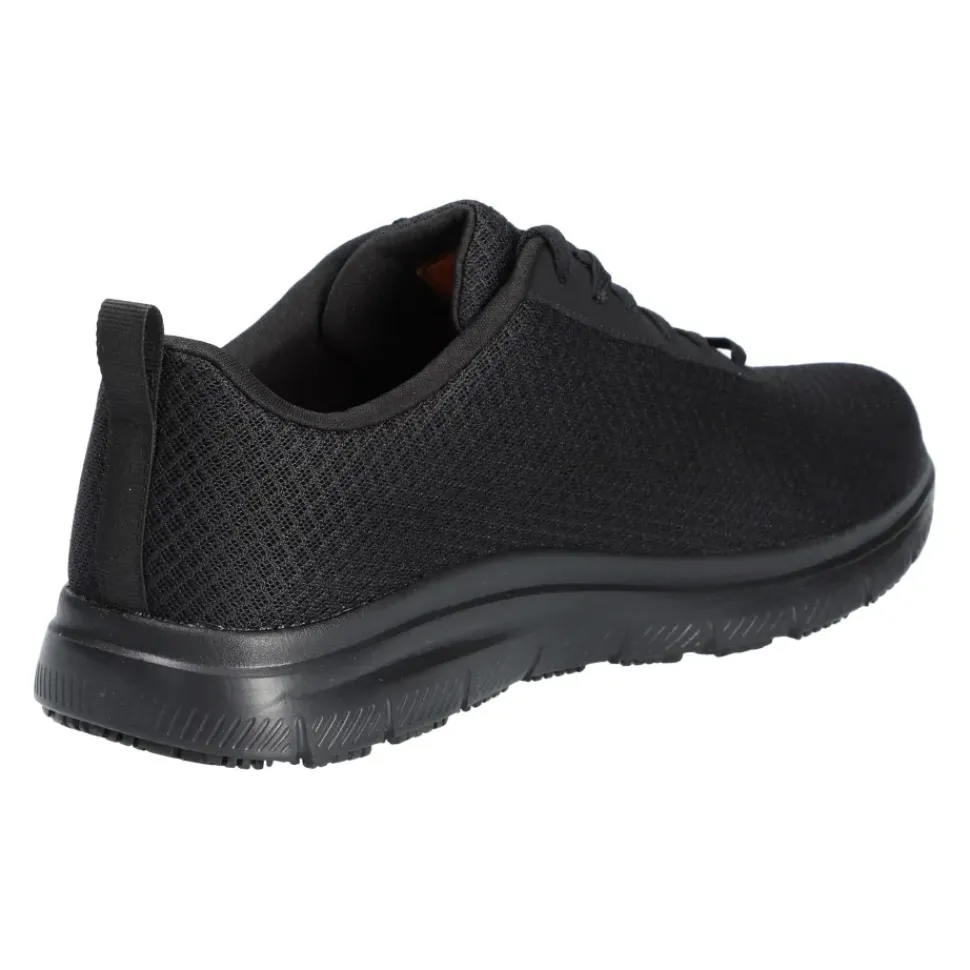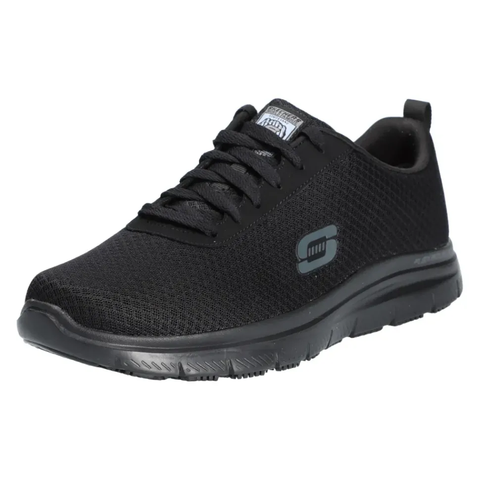 Sportlicher Stil trifft beim SKECHERS Work Relaxed Fit® auf Tragekomfort. Das Obermaterial aus weichem Sport-Mesh und Synthetik ist wasser- und schmutzabweisend. Sportlicher, rutschhemmender Sneaker mit Schnürung und einer Memory Foam Innensohle.