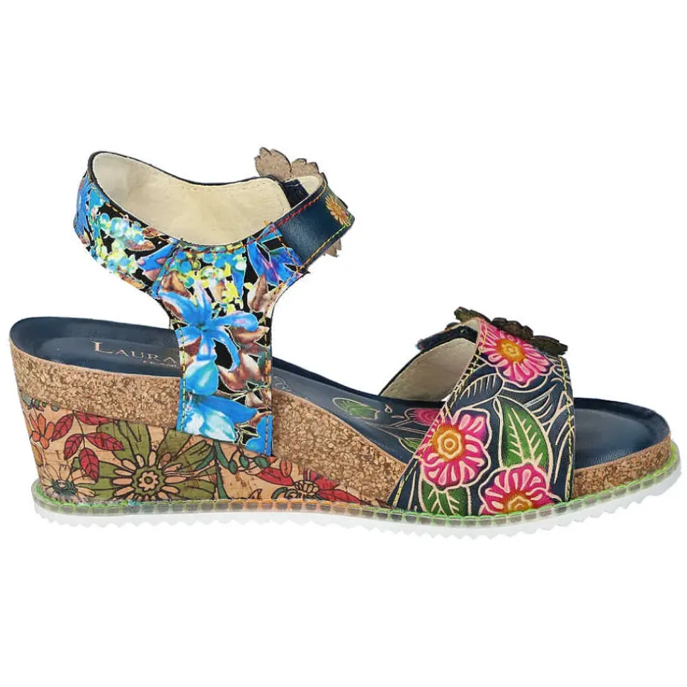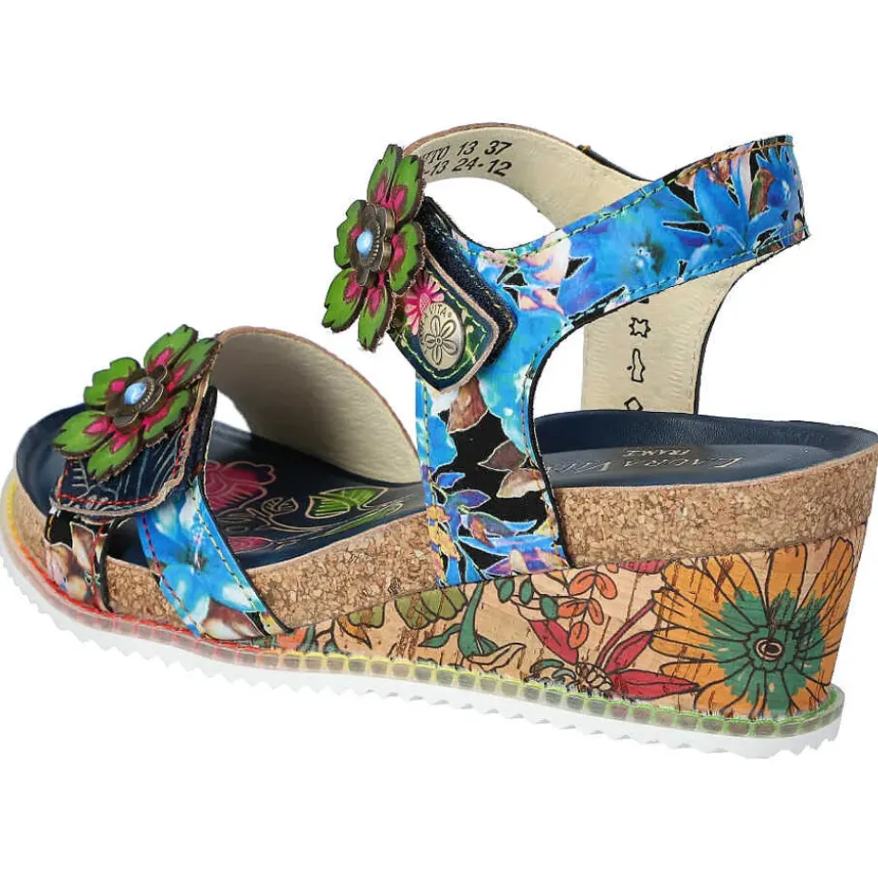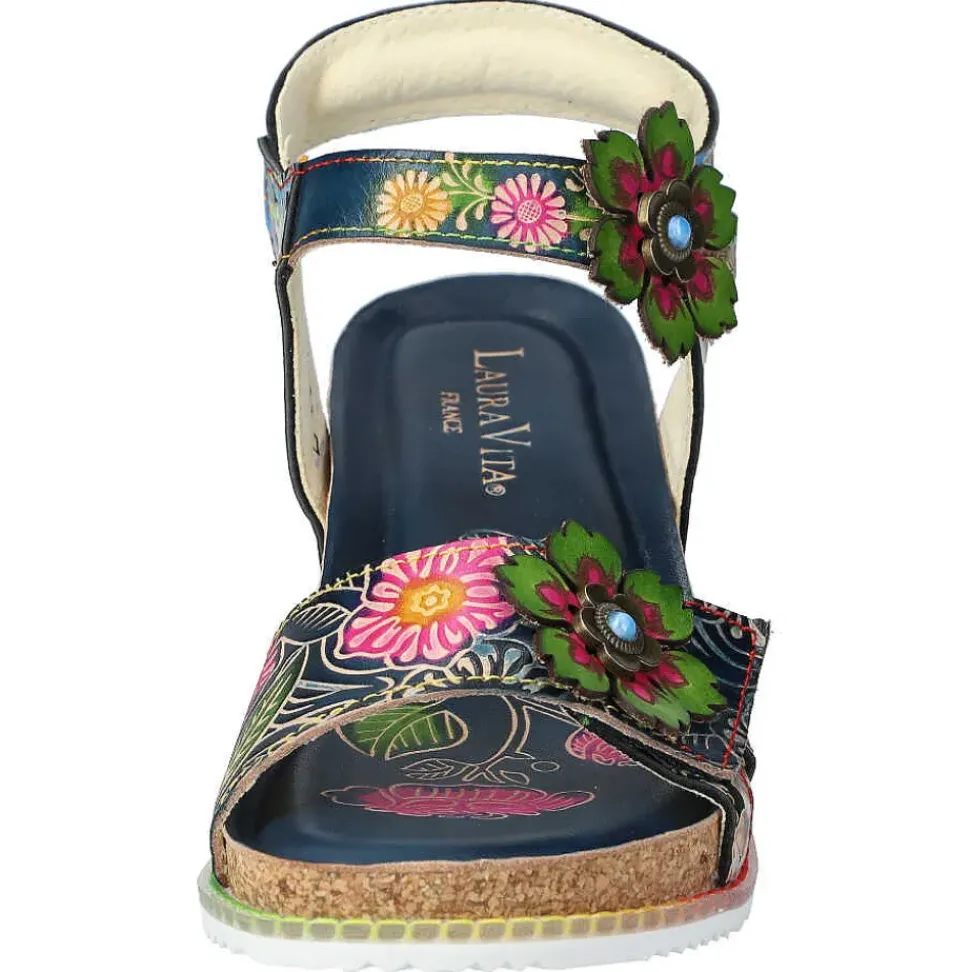 Die Sandalette von Laura Vita setzt auf Kontraste und wird durch den Material-Mix modisch in Szene gesetzt. Ein perfekter Schuh für sonnige Sommertage.