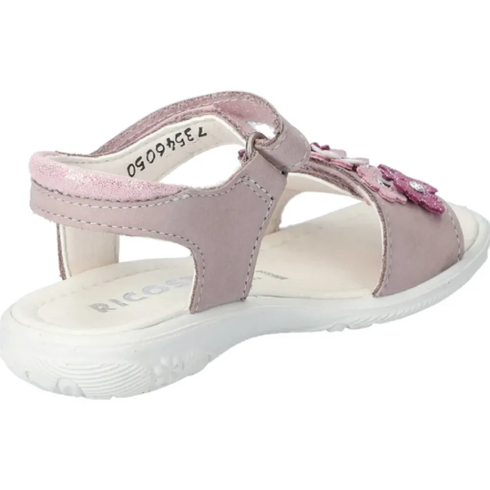 CILIA von RICOSTA – Mädchen Sandalen für Prinzessinnen. CILIA hat glitzernde Blumen auf dem Obermaterial und Microfaserfutter als Futtermaterial. Die Sandalen verfügen über Klettverschluss und einer rutschfesten und superleichten Sohle aus PU.