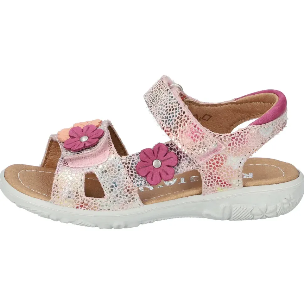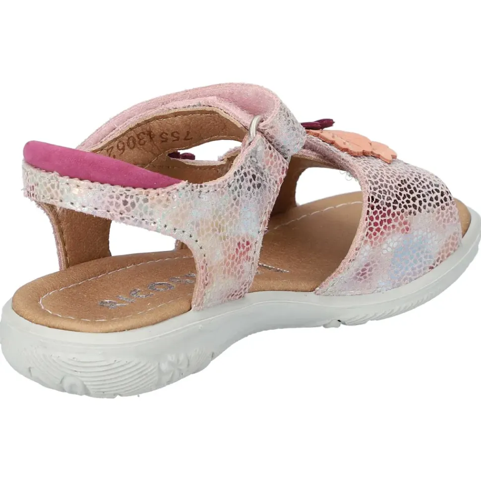 Süße Kinder-Sandalette mit hübschen Verzierungen und Metallic-Effekt.