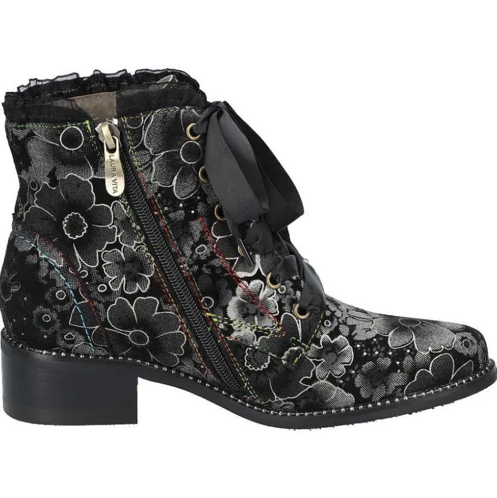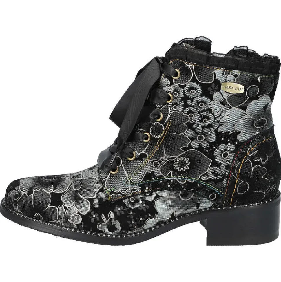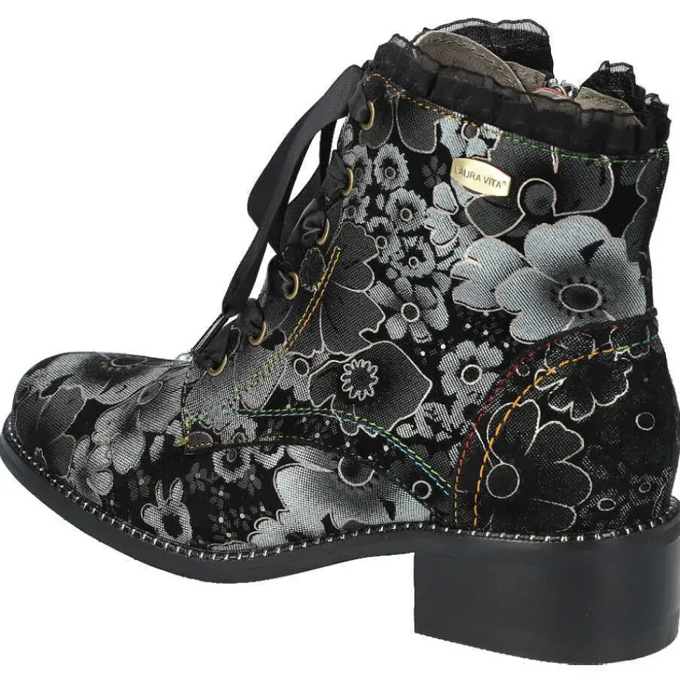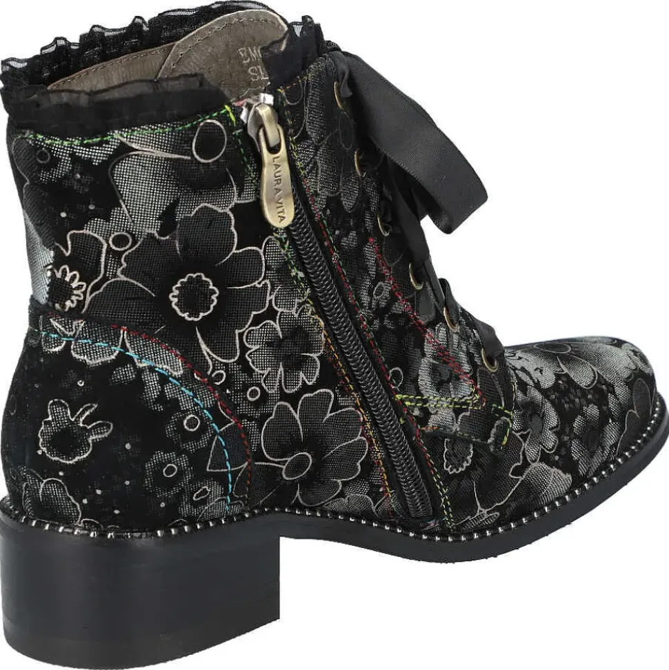 Diese Stiefelette von Laura Vita setzt auf Kontraste und wird durch den Material-Mix modisch in Szene gesetzt. Durch den seitlichen Reißverschluss schlüpfen Sie problemlos hinein und genießen besten Tragekomfort.