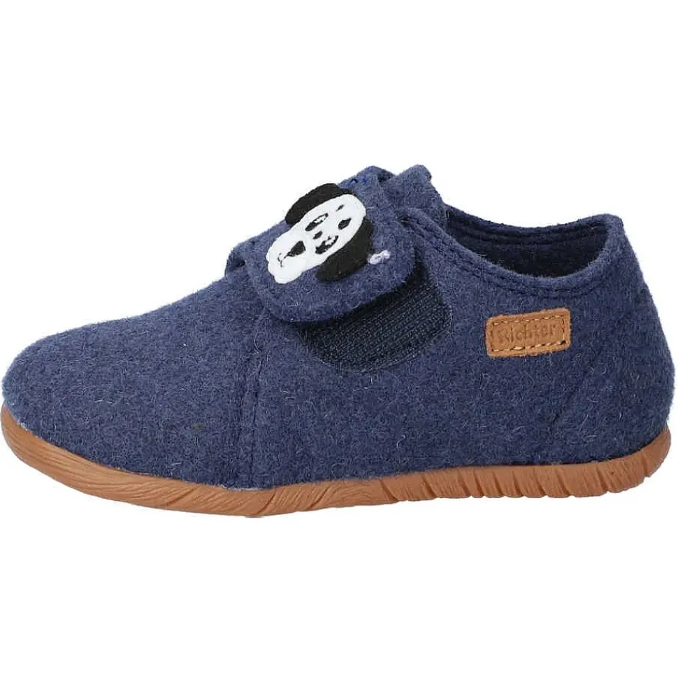 Der Hausschuh von Richter – coole Hausschuhe mit Hunde-Motiv und praktischem Klettverschluss zum einfachen An- und Ausziehen.