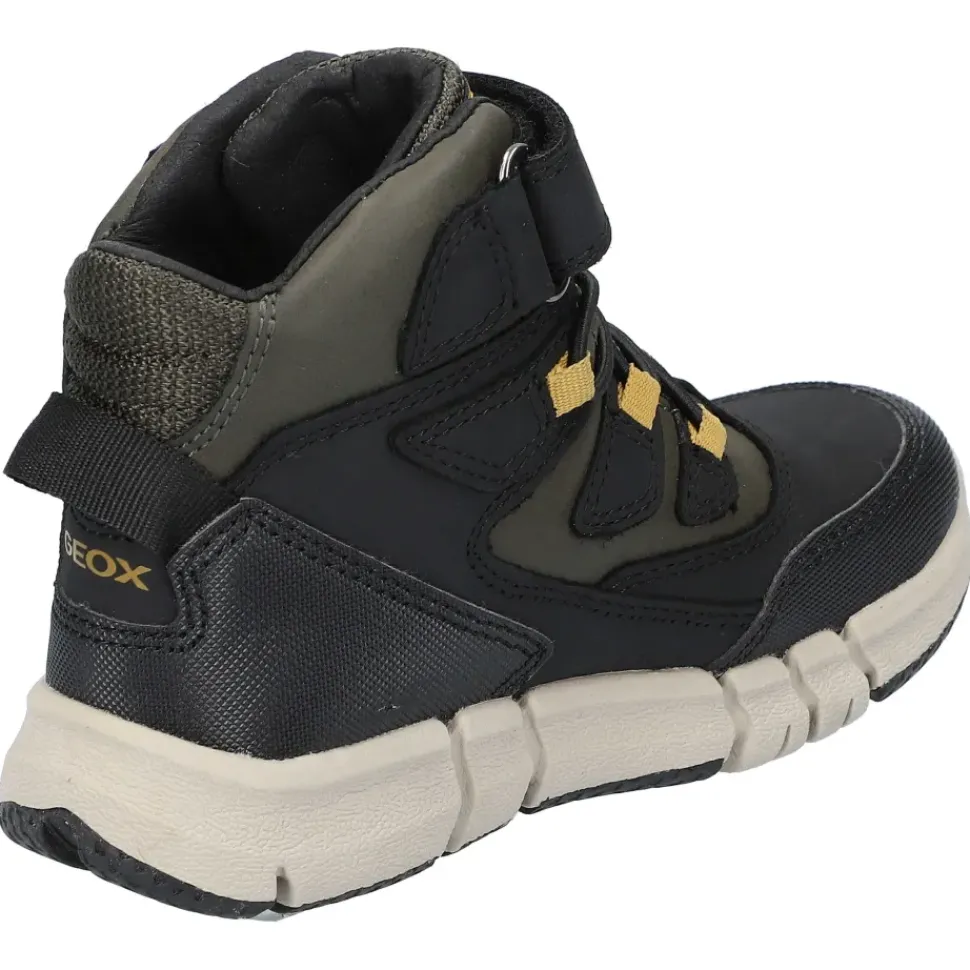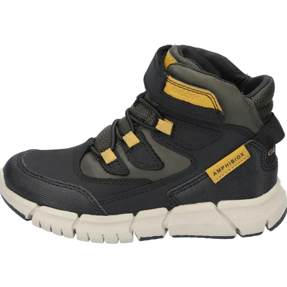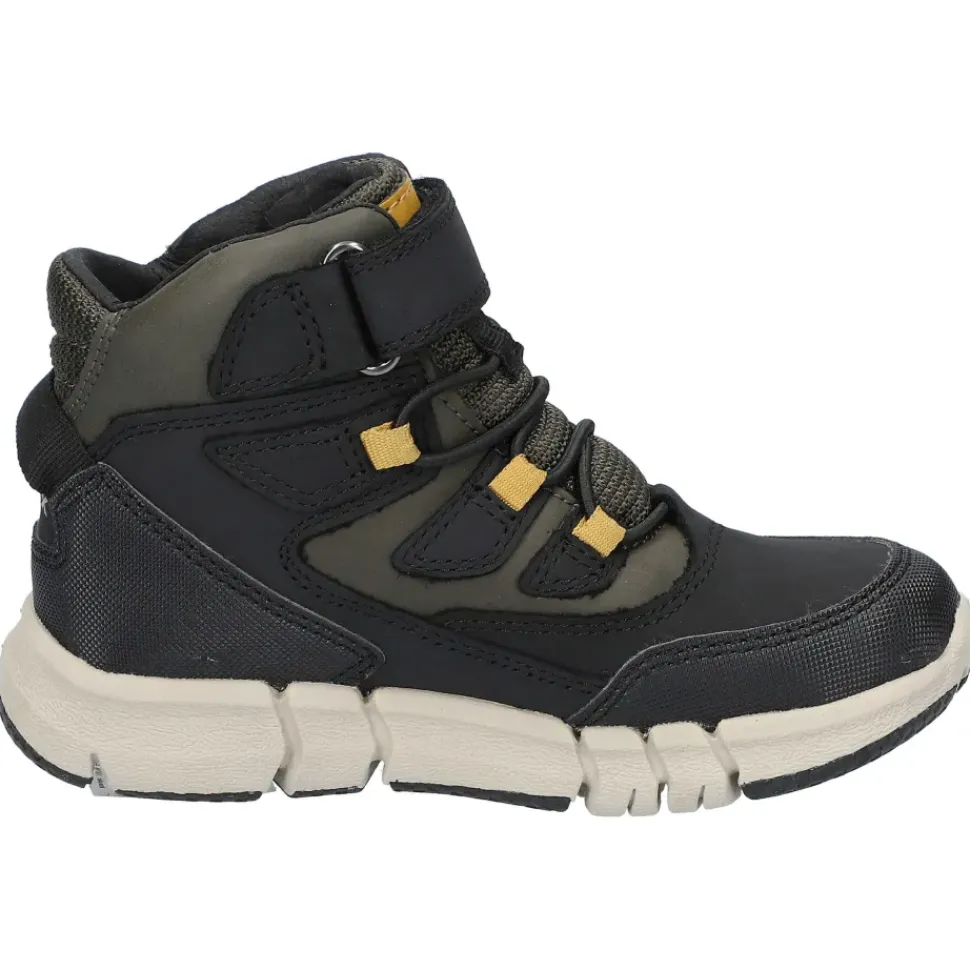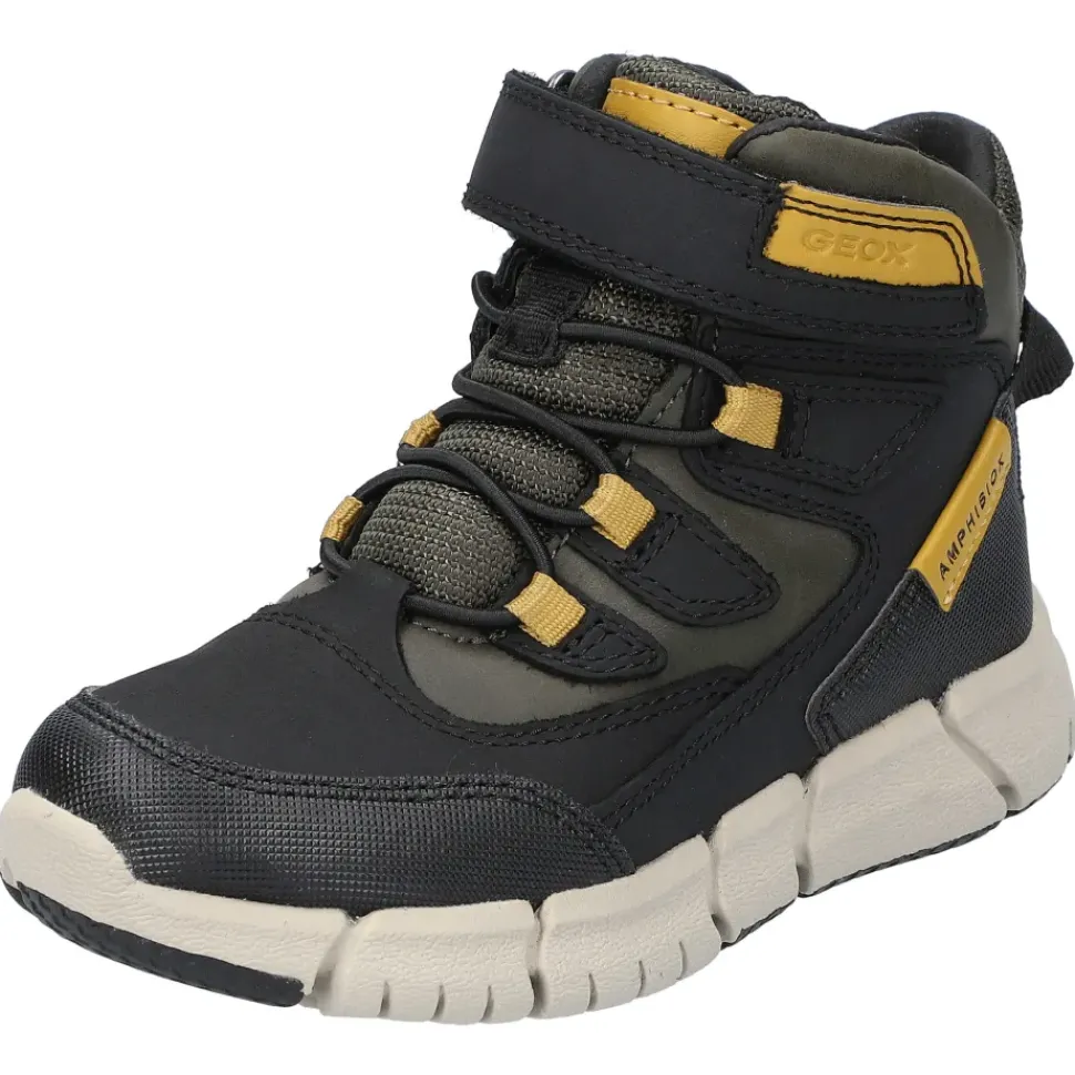 Warme, wasserdichte Jungenstiefelette, ultraflexibel und stoßgedämpft. Eine Stiefelette aus Nubukleder und Material in gewachster Lederoptik mit einer innovativen Sohle, die dem Fuß maximale Flexibilität, Stoßdämpfung und Stabilität bietet.