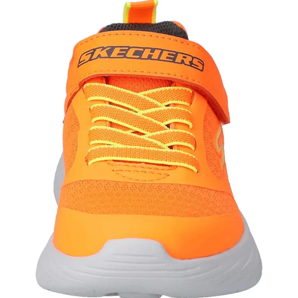 Die Kinderschuhe von Skechers sind perfekt für ihre Kleinen. Durch den Klettverschluss und der angedeuteten Schnürung aus Elastikbändern muss nicht geschnürt werden und das An- und Ausziehen wird zum Kinderspiel.