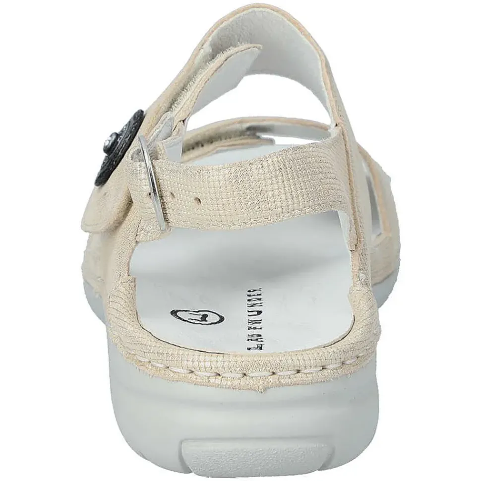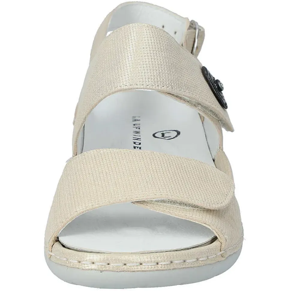 Bequeme Sandaletten von Laufwunder aus Leder.Durch den seitlichen Klettverschluss ist das An- und Ausziehen ein Kinderspiel.