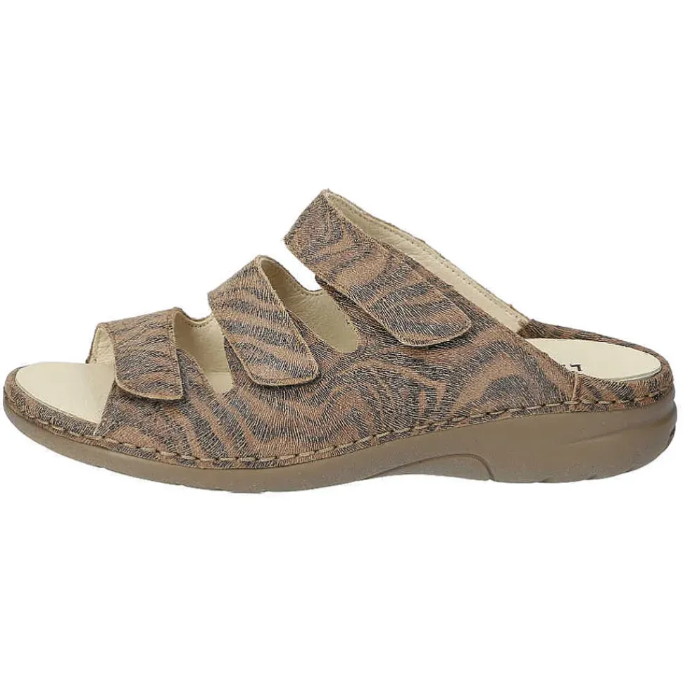 Bequeme Damenpantolette von Laufwunder. Die gepolsterte Sohle sorgt für einen hohen Tragekomfort.
