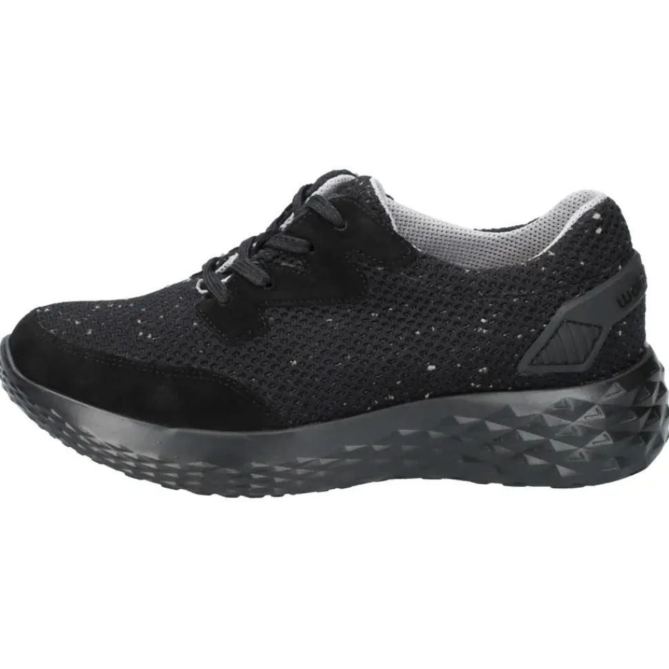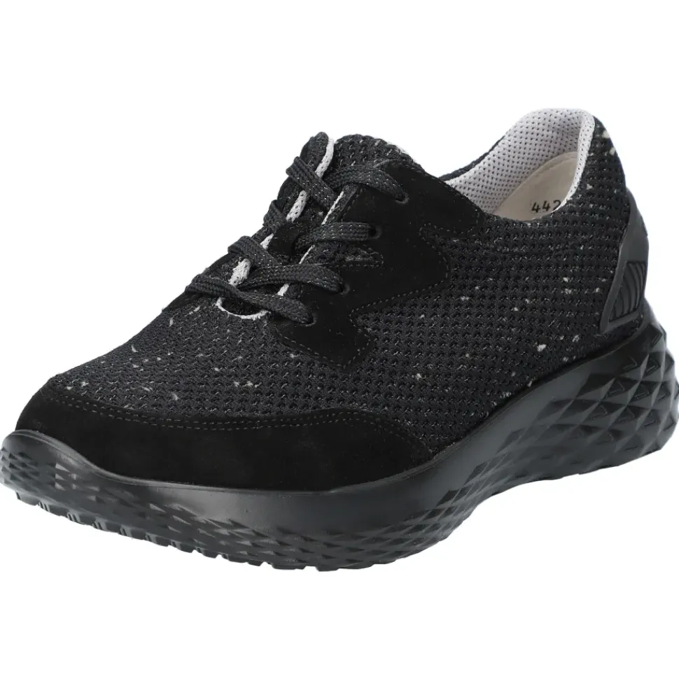 Damen-Schnürer aus weichem Veloursleder mit Textil und heraußnehmbarer Innensohle.