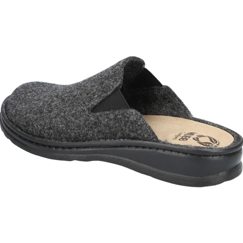 equeme Pantoffeln von MUBB. Weiches Woll-Filz in grau, perfekt für kalte Tage. Ultraleichte Laufsohle mit Rutsch- und Schockabsorber.