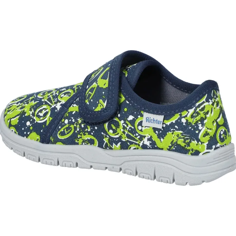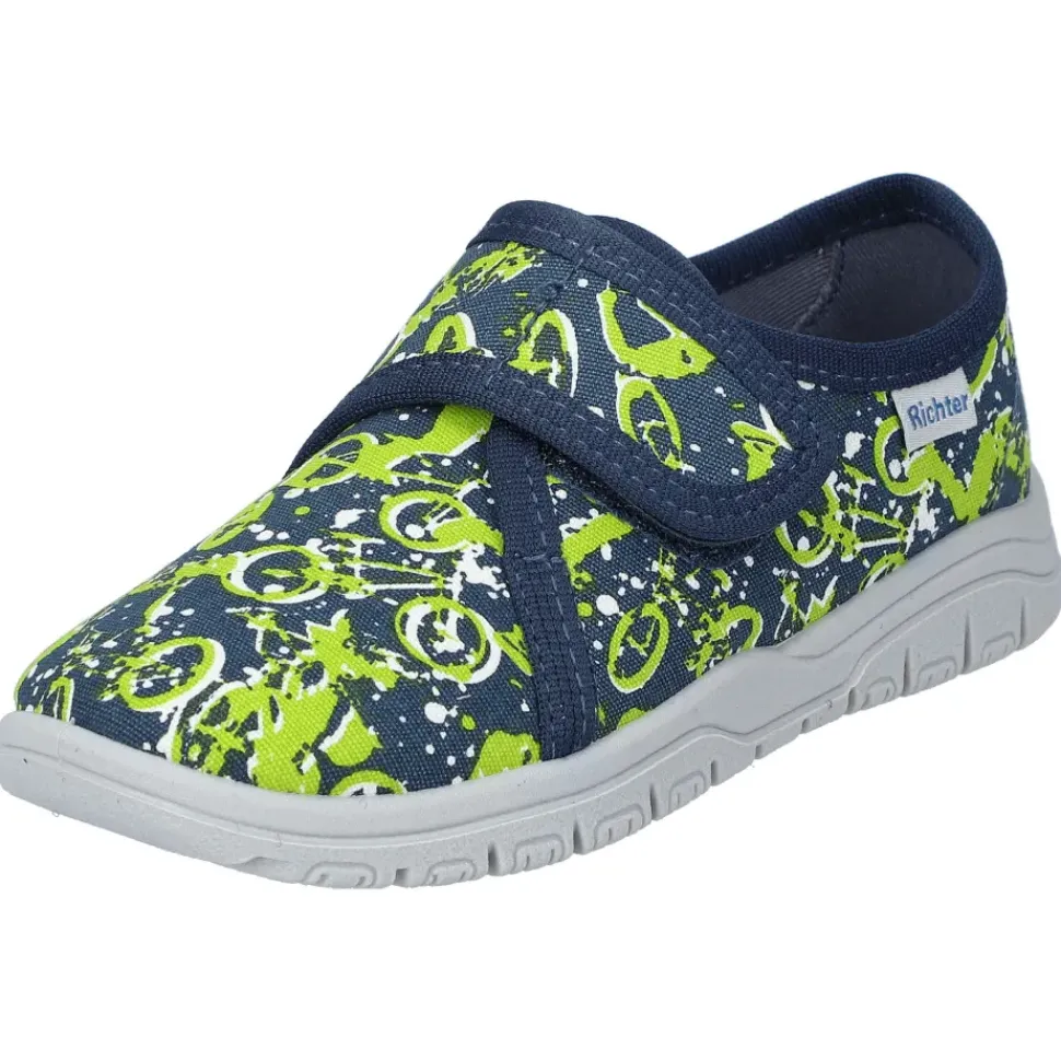 Der Kinder-Hausschuh von Richter sorgt für ein angenehmes Tragegefühl und die Sohle ist rutschhemmend. Der Klettverschluss erleichtert das An- und Ausziehen.