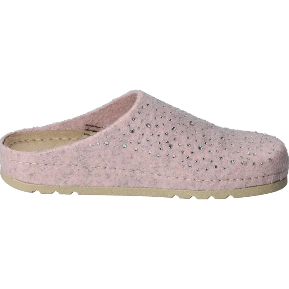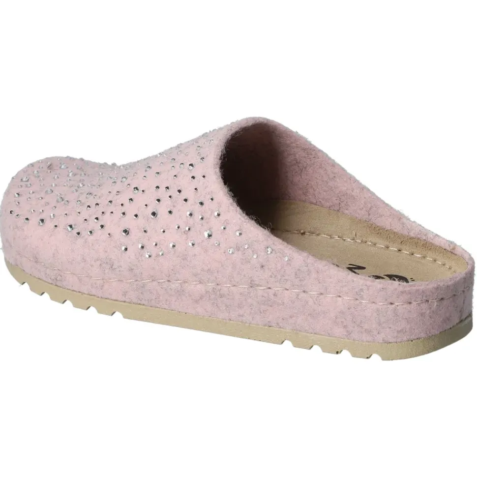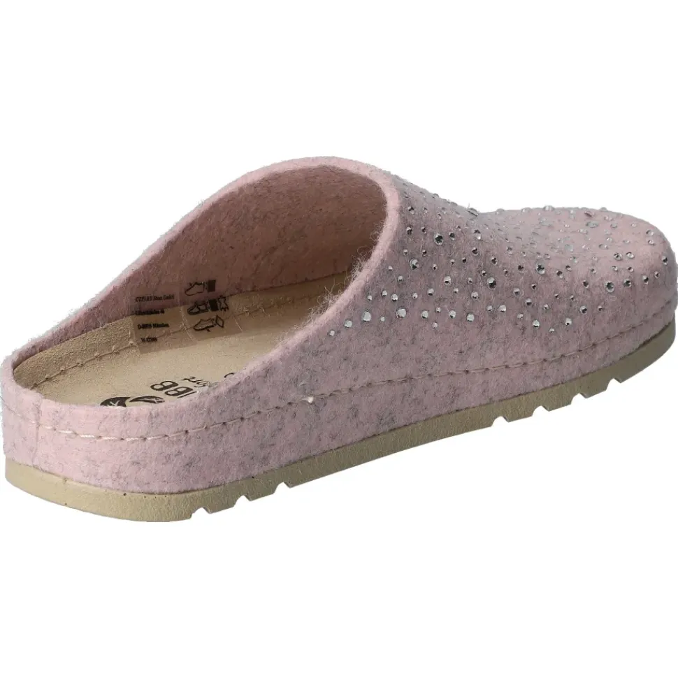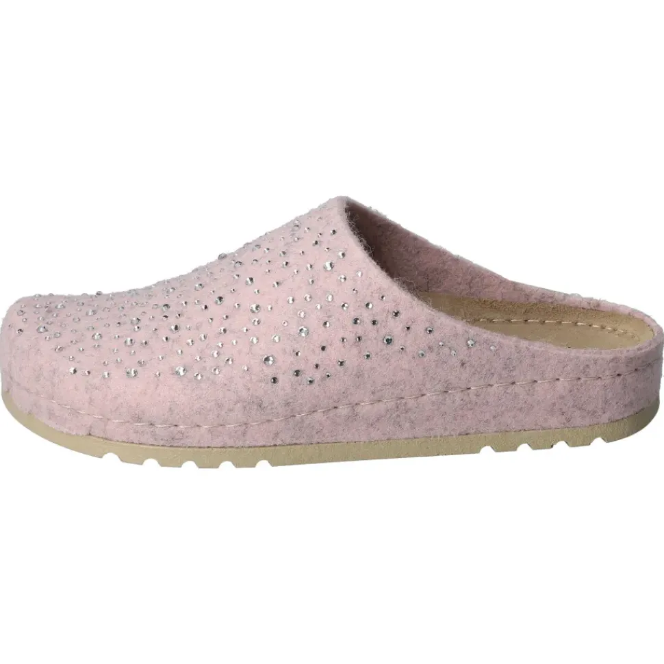 Bequeme Pantoffeln von MUBB. Weiches Woll- Filz in rose mit tollen Steinchen-Verzierung geschmückt. Perfekt für kalte Tage. Ultraleichte Laufsohle mit Rutsch- und Schockabsorber.