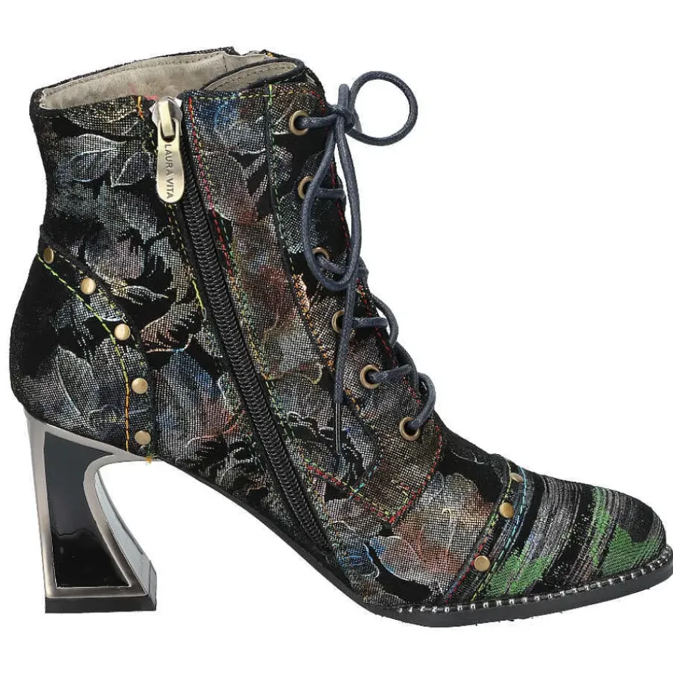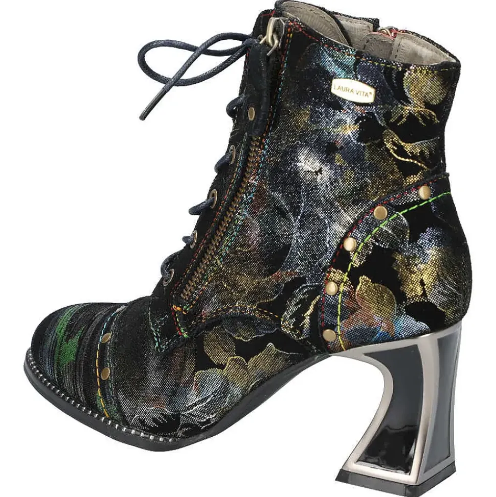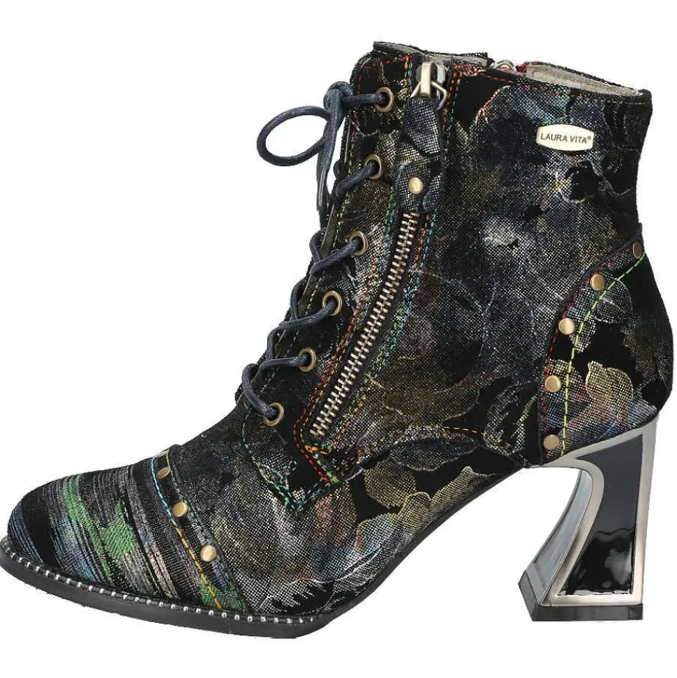 Diese Stiefelette von Laura Vita setzt auf Kontraste und wird durch den Material-Mix modisch in Szene gesetzt. Durch den seitlichen Reißverschluss schlüpfen Sie problemlos hinein und genießen besten Tragekomfort.