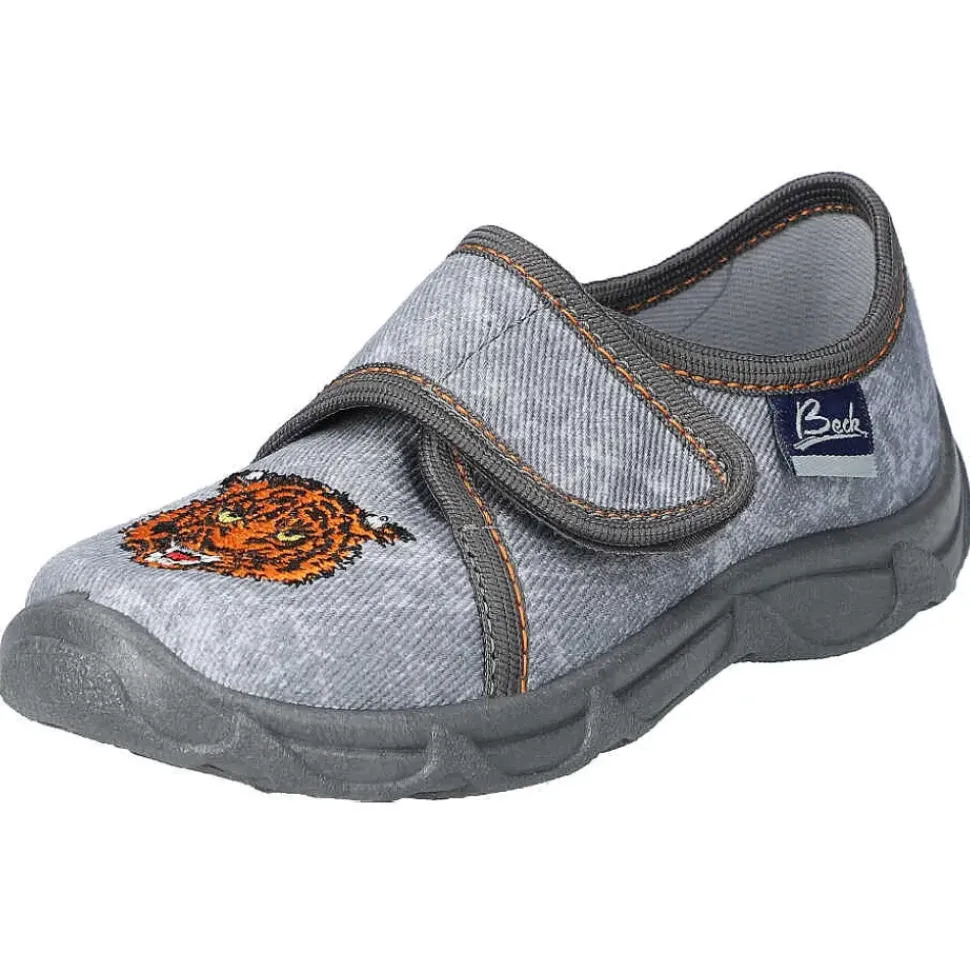 Der Hausschuh von Beck – coole Hausschuhe mit tollem Motiv und praktischem Klettverschluss zum einfachen An- und Ausziehen.