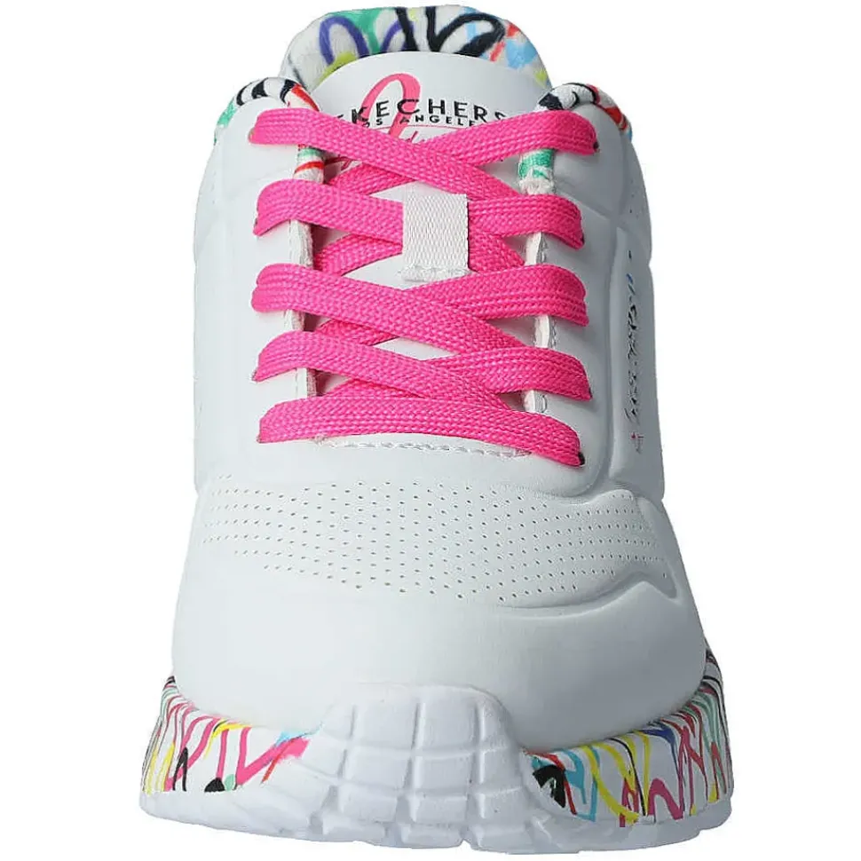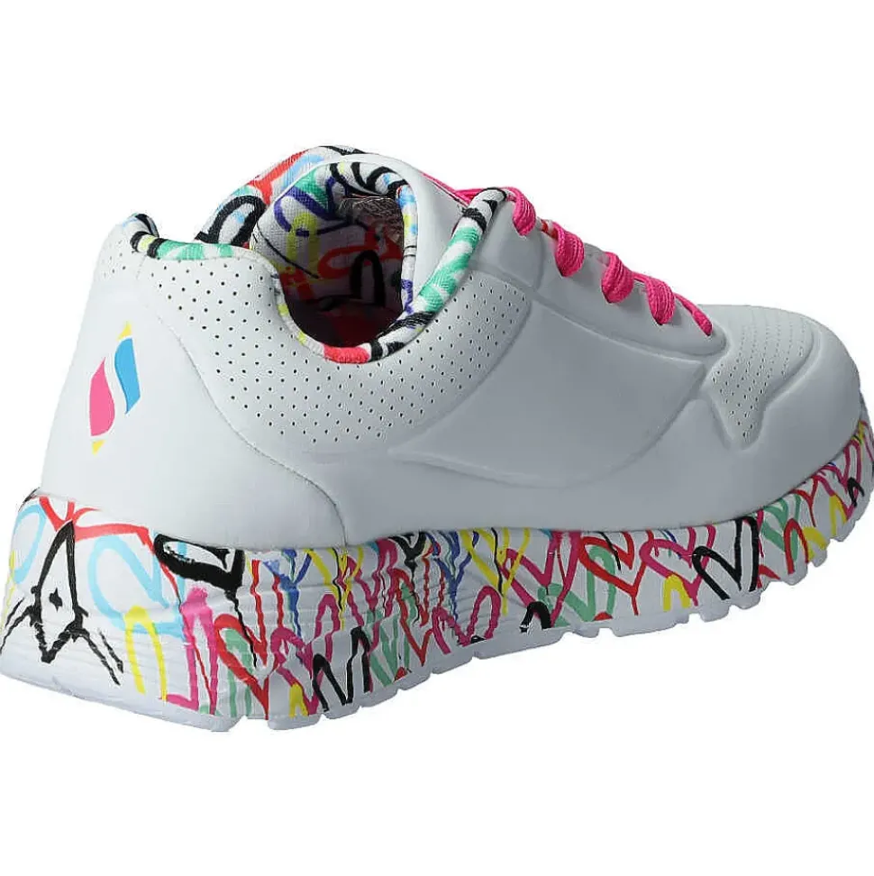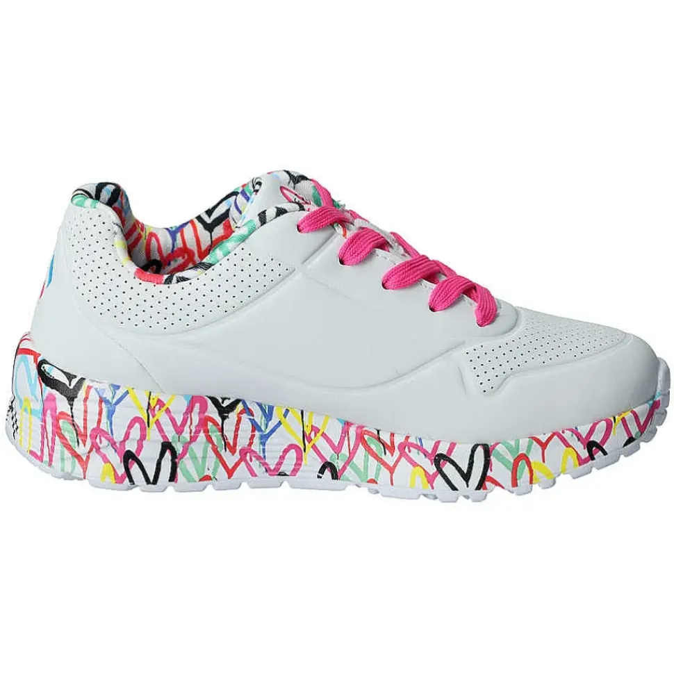 Der Skechers design von“ James Goldcrown“ mit einem Obermaterial aus Synthetik und vielen bunten Herzen.
