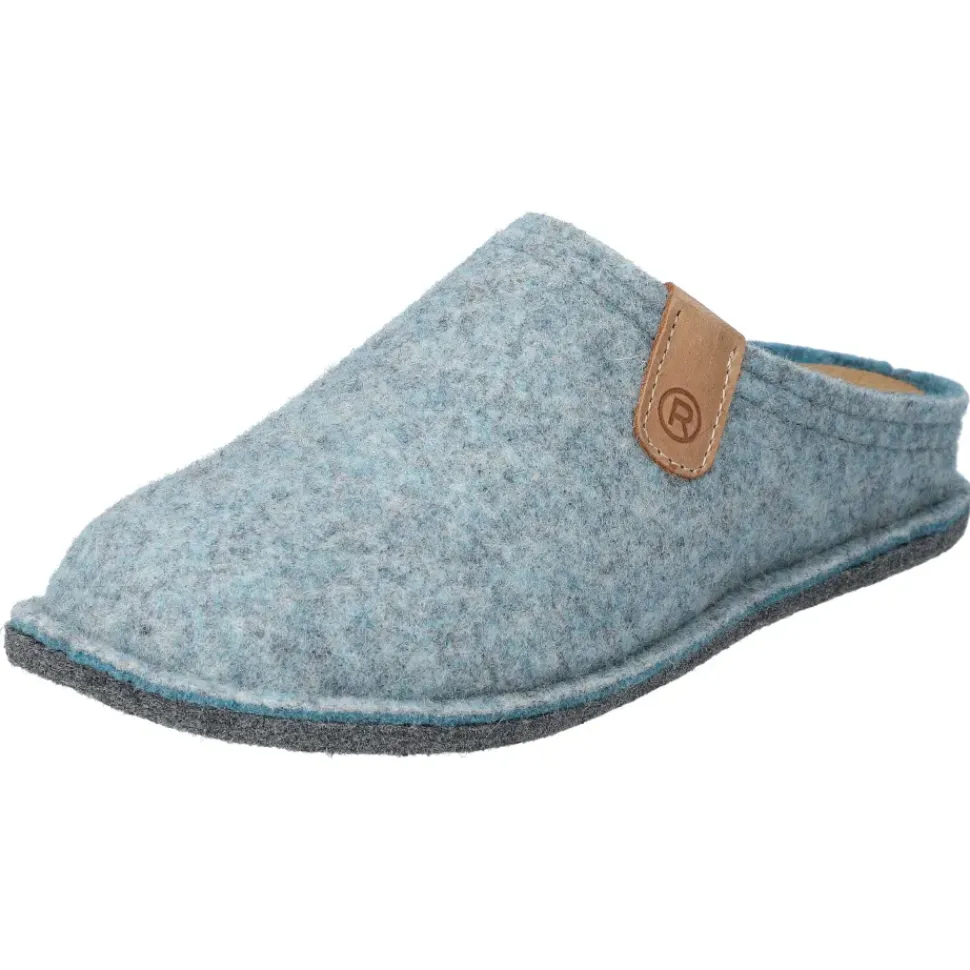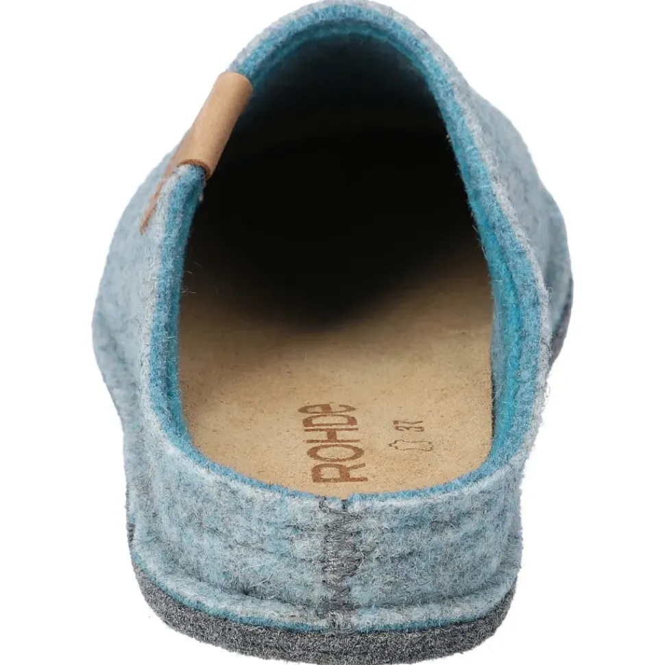 Damen Winterpantoffeln in Baltic-Farbe. Sie sind aus bequemen Filz gefertigt und haben einen Absatz von 25 mm – die perfekten Hausschuhe.