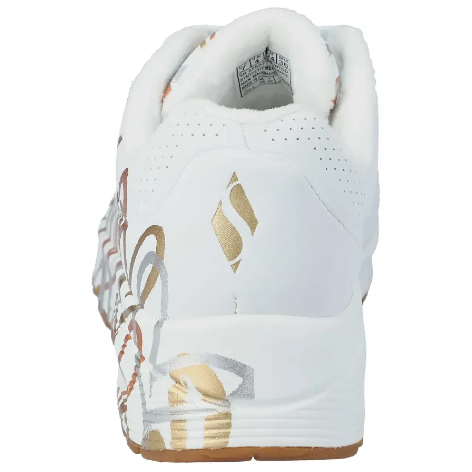 Der Skechers designt von „James Goldcrown“ mit einem Obermaterial aus Synthetik und vielen gold/silber Herzen.