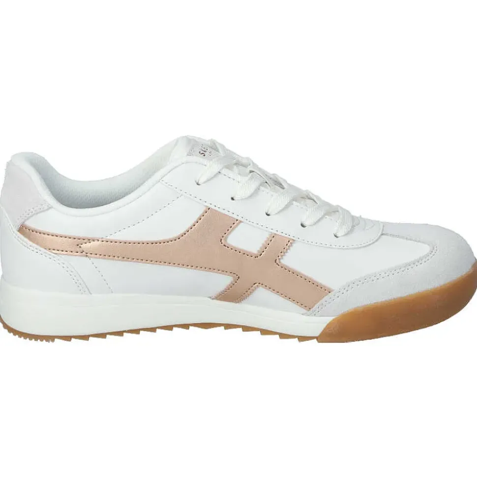 Bei den Damen-Sneakern von Skechers treffen Design und Komfort aufeinander. Durch die Air-Cooled-Memory-Foam sind die Füße immer weich gebettet und das sportliche Design rundet den Sneaker ab.