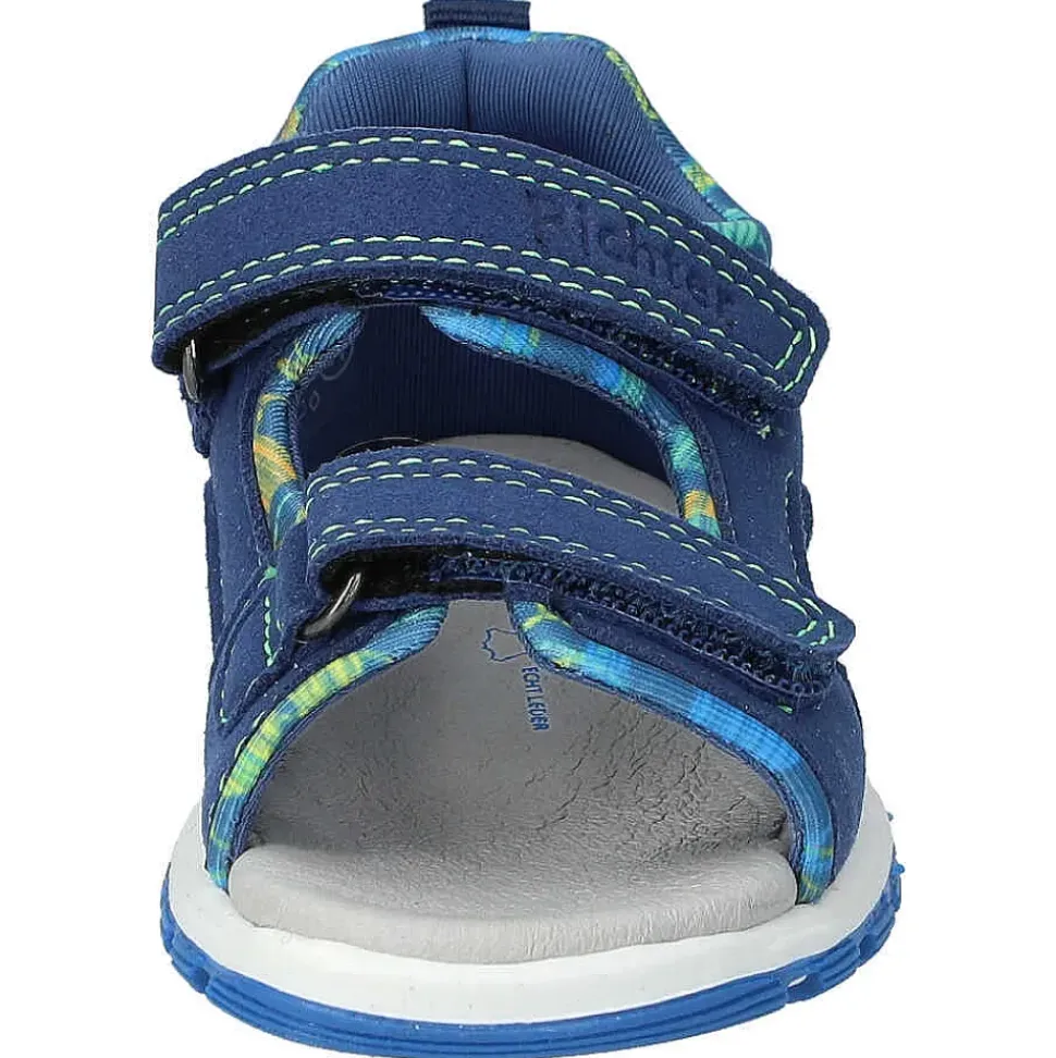 Sportliche Kinder-Sandalen von Richter. Sie sind der ideale Begleiter im Alltag. Durch den Klettverschluss und die sehr flexible Sohle wird eine sehr gute Passform ermöglicht.