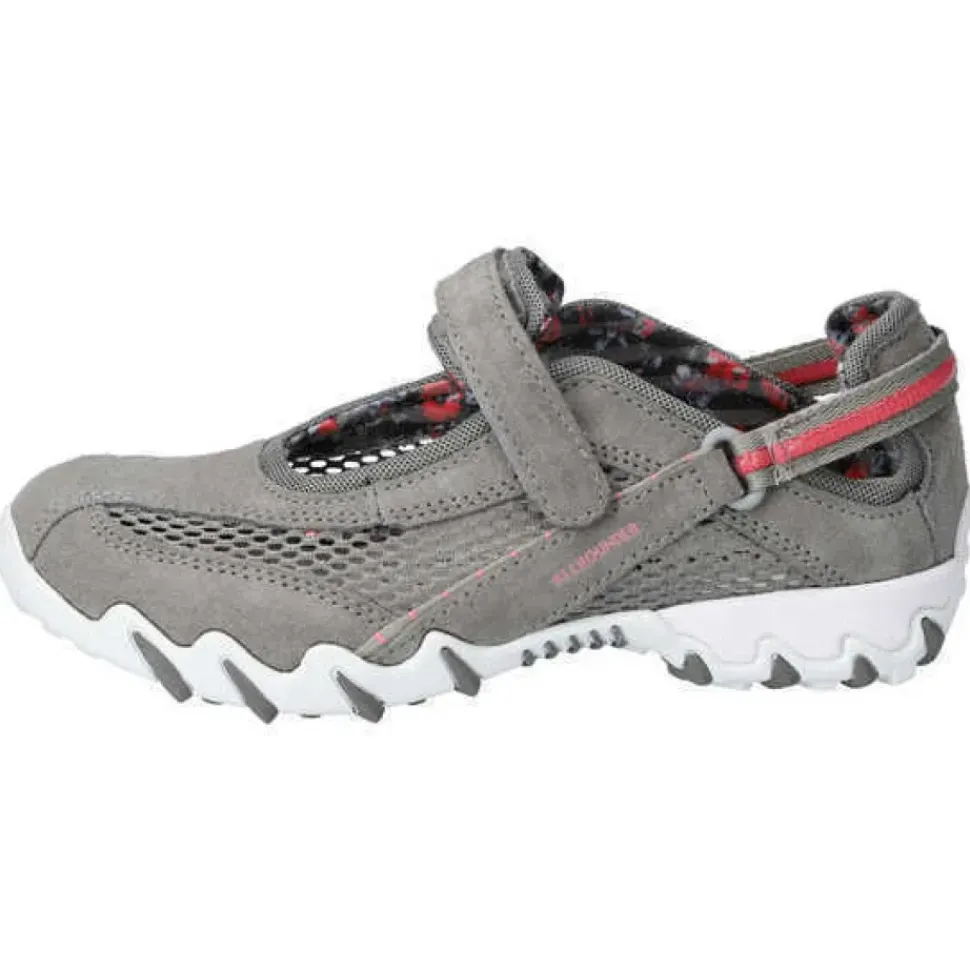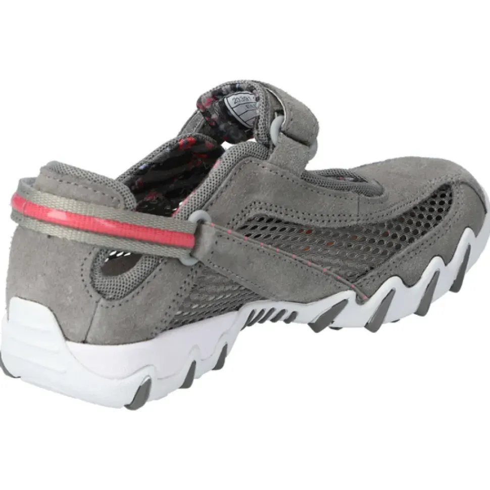 Das geländetaugliche Profil bietet genügend Halt – und das auch in anspruchsvollem Gelände. Weiche Fersenpolsterung verhindern Druck- oder Scheuerstellen. Individuell einstellbare Fersen- und Ristriemen geben perfekten Halt. Auswechselbares Fußbett.